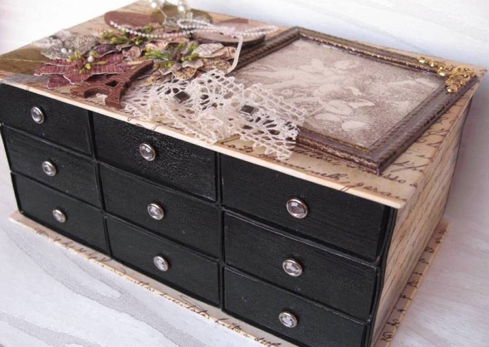 Наиболее простым вариантом украшения является обновление с помощью рисунков. В этом случае все будет завить от богатства вашей фантазии, но за основу рекомендуется взять идею разметки ящичков цифрами. В итоге вы не только вернете данному мебели эстетическую привлекательность, но и систематизируете его содержимое.