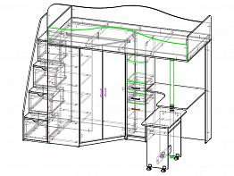 Кровать-чердак с рабочей зоной Мираж 3 BMS