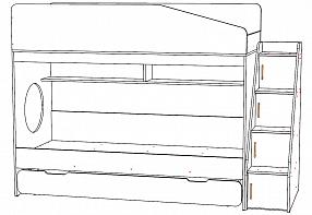 Кровать чердак Радуга 1,6 с ящиком и лестницей BMS