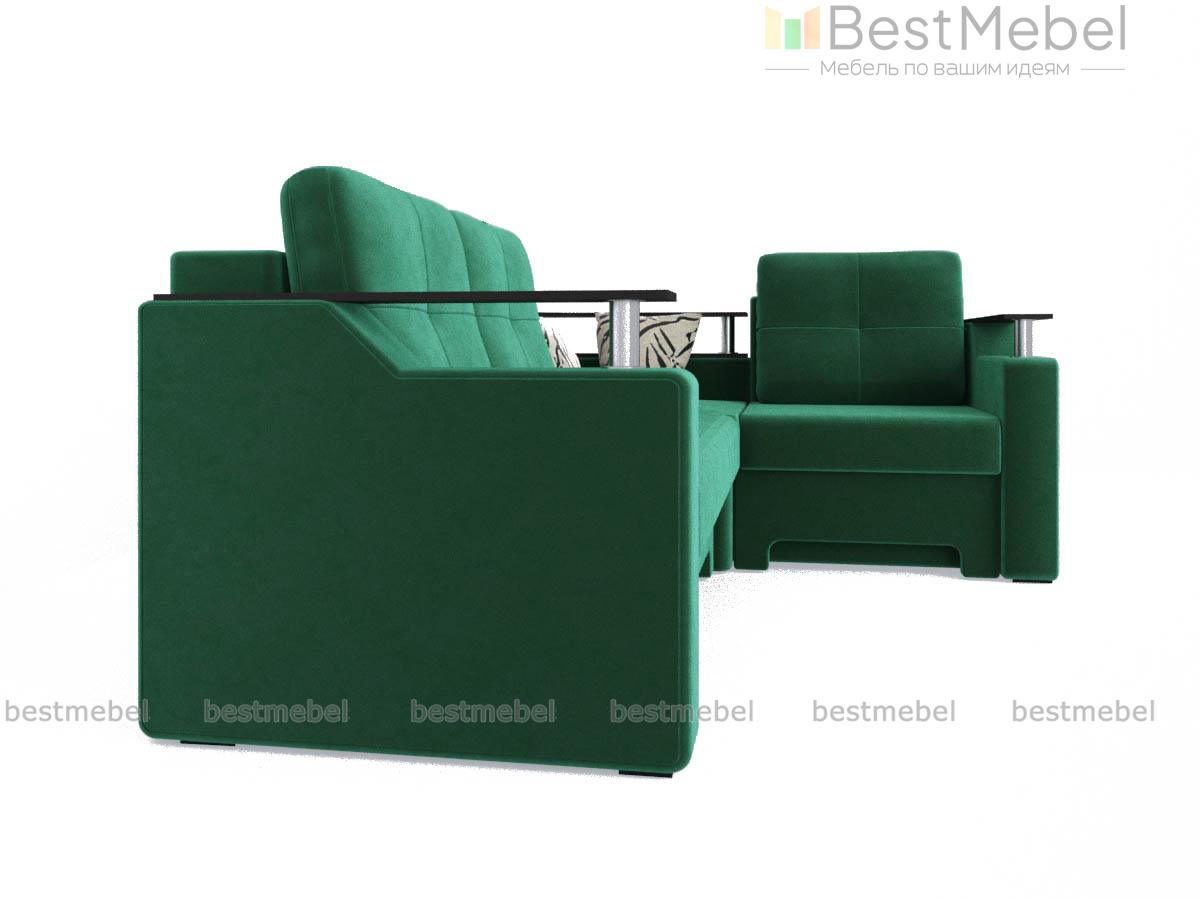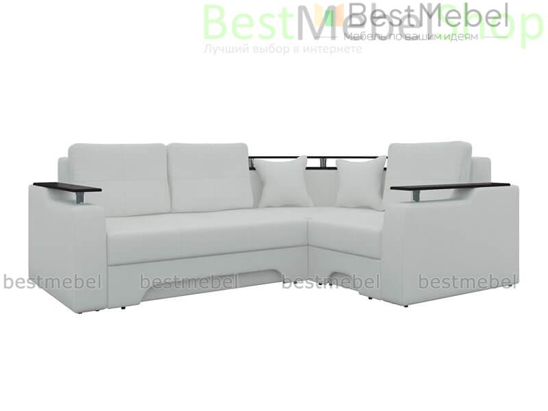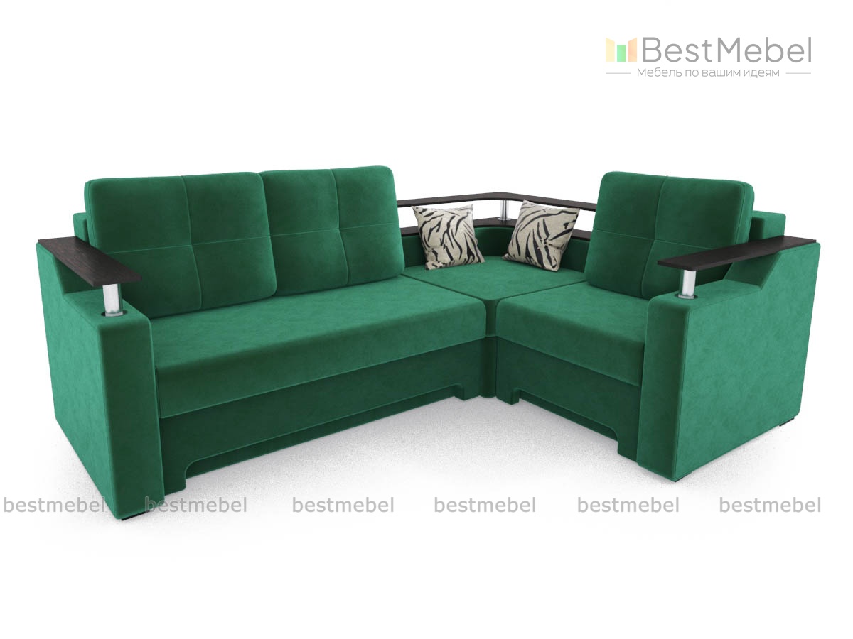 Угловой диван Комфорт BMS станет центральным элементом обстановки гостиной. Угловая модель сделает комнату уютнее и светлее. Подлокотники дополнены эффектными планками на металлических опорах. Трансформация изделия в спальное место происходит с помощью механизма «еврокнижка». В основании используется пружинный блок, поэтому модель порадует упругостью и умеренной жесткостью сидений. В собранном состоянии Вы получите место для отдыха в кругу семьи, а в разложенном положении диван легко заменит кровать королевских размеров. Для спальных принадлежностей имеется специальный ящик. Купить угловой диван Комфорт BMS можно по низкой цене на нашем официальном сайте.