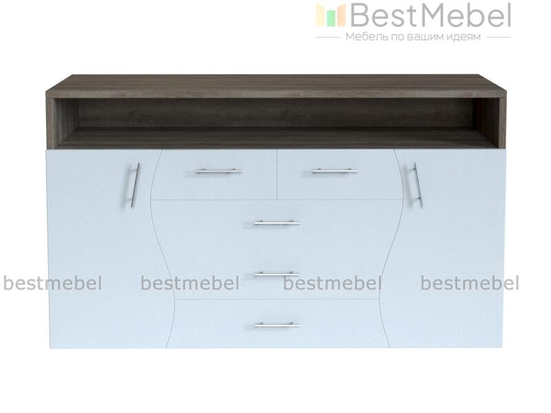 Крупногабаритный комод Помпей м19 BMS – рациональный подход к размещению предметов гардероба, книг, документов и разнообразных мелочей. Волнообразные линии ящиков фасада делают модель необычной и придадут комнате стильный вид. Корпус нейтральных оттенков под массив дерева гармонично сочетается с контрастными глянцевыми фасадами. Удобное хранение вещам обеспечат пять выдвижных ящиков, распашные отделения и открытые полки. Просторная столешница подходит для ТВ или интерьерных украшений.