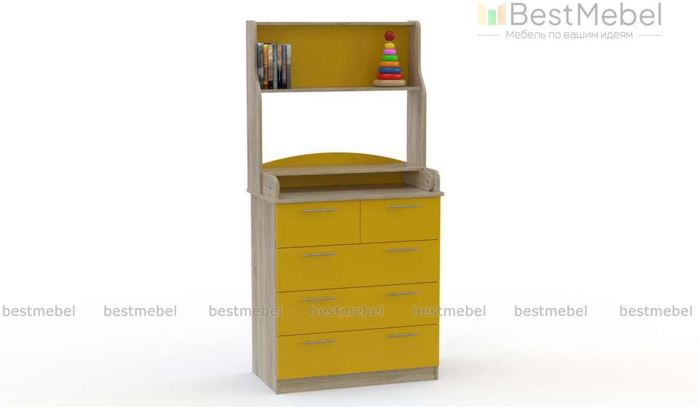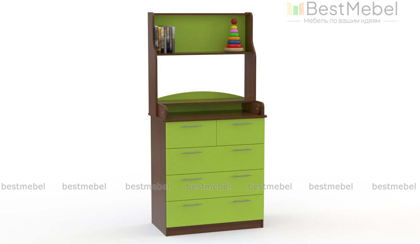 Комод пеленальный Магнолия 1 BMS оборудован надстройкой с открытой полкой, которая позволяет разместить под рукой средства гигиены, а когда малыш подрастет – игрушки и книги. В нижней части комода располагаются два малых и три больших выдвижных ящика для хранения детских вещей. Пеленальную поверхность с откидным столиком защищают скругленные для безопасности бортики. Купить комод пеленальный Магнолия 1 BMS вы сможете в нашем интернет-магазине с выбором фурнитуры и цвета по каталогу.