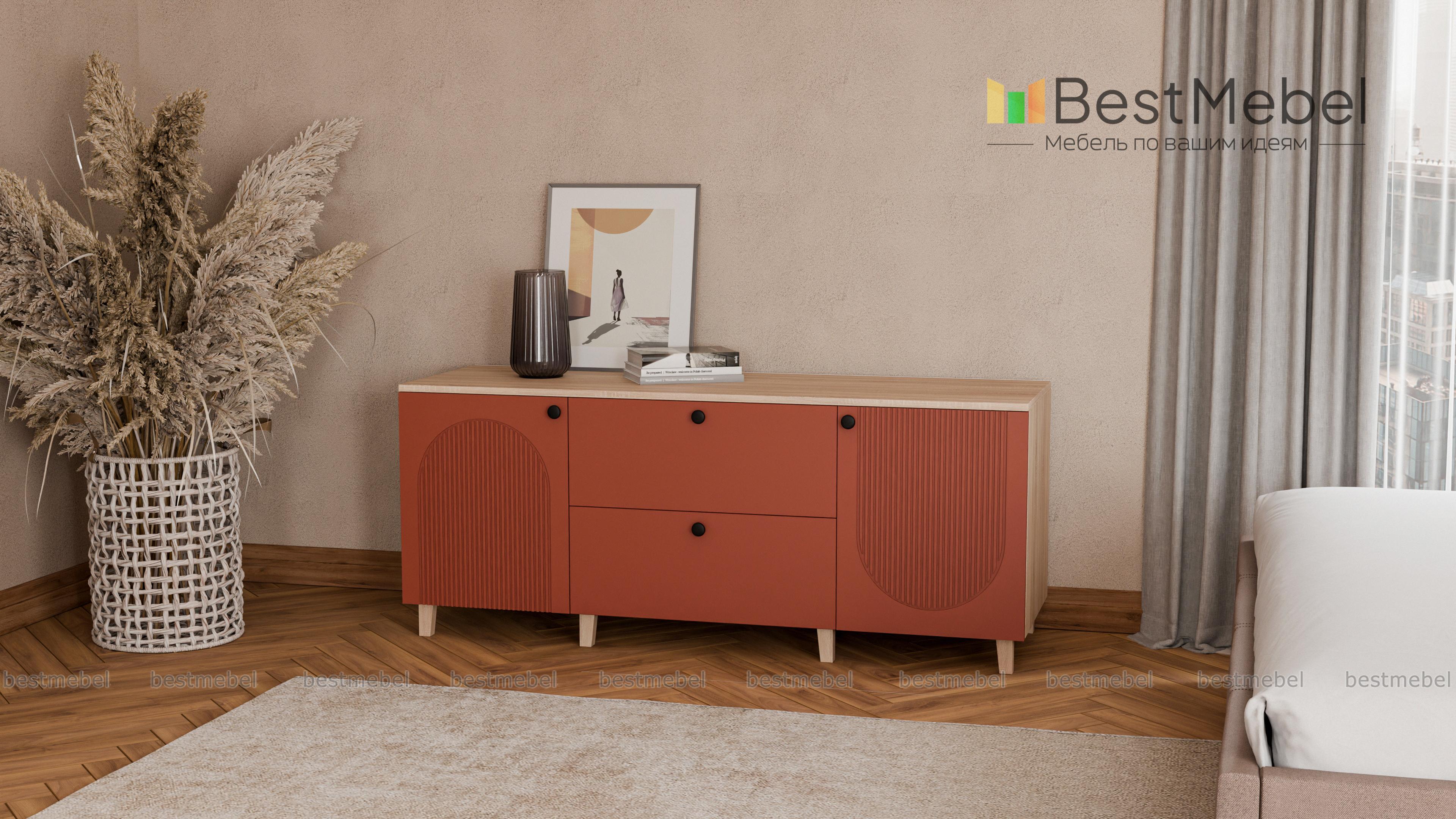 Комод Рене 5 BMS может использоваться для организации зоны ТВ, размещения интерьерных украшений и хранения. Модель современного дизайна с высокими ножками привлекает внимание стильной рельефной отделкой. Два глубоких ящика в центре и два распашных отделения по бокам помогут вам упорядочить хранение домашнего текстиля и всевозможных мелочей. Купить комод Рене 5 BMS в актуальных оттенках и любом удобном размере вы сможете на сайте нашего интернет-магазина.