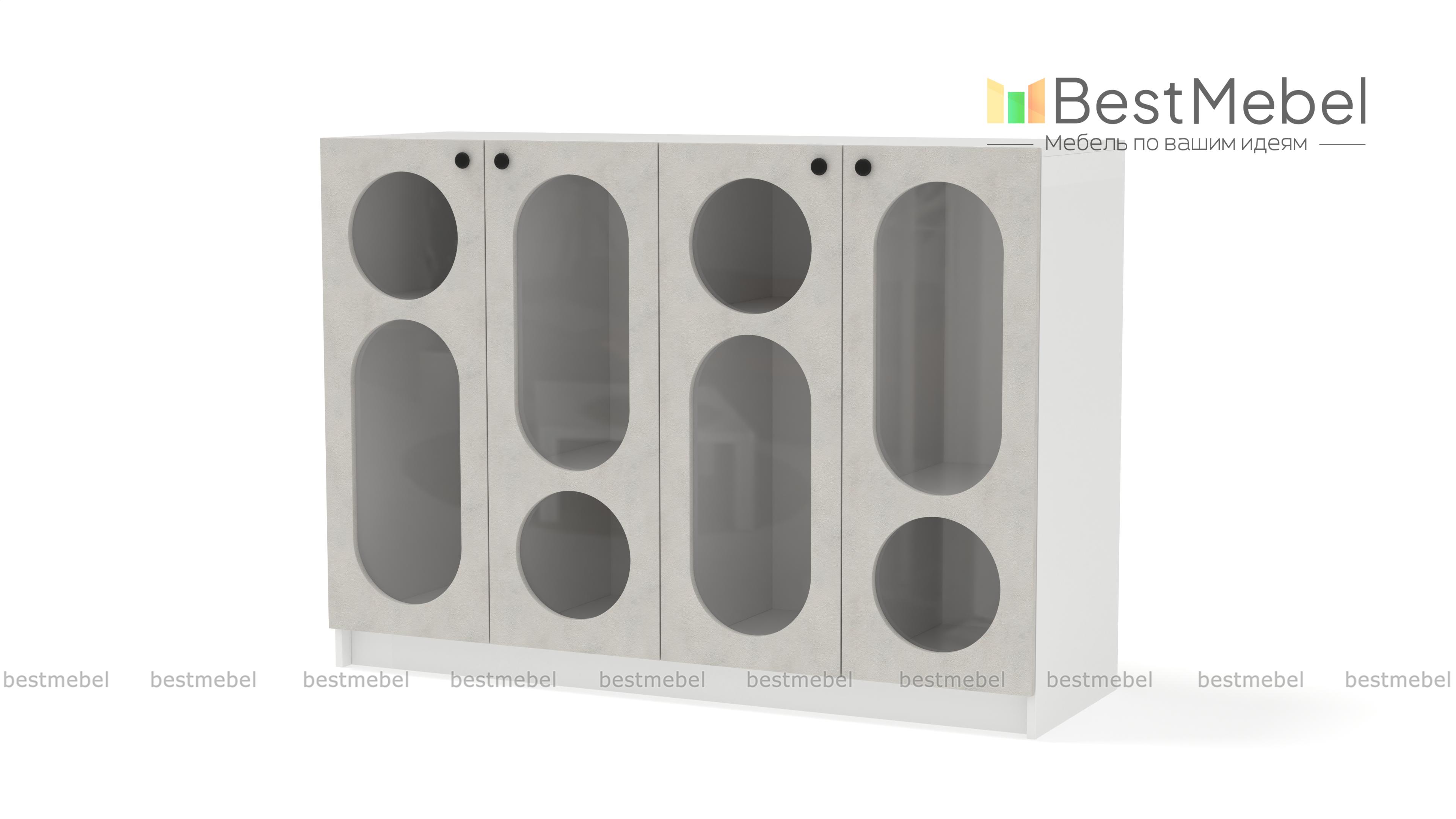 Комод Руди 3 BMS отлично вписывается в гостиные, молодежные комнаты и общественные пространства. Четыре распашные дверцы со стеклом выполнены из МДФ актуального оттенка и имеют округлые геометрические вырезы. Книги, посуда, органайзеры с мелочами и предметы декора будут выглядеть стильно на полках за фигурными стеклами витрины. Купить комод Руди 3 BMS вы всегда сможете на сайте нашего интернет-магазина, подобрав необходимые размеры и оттенки по каталогу.