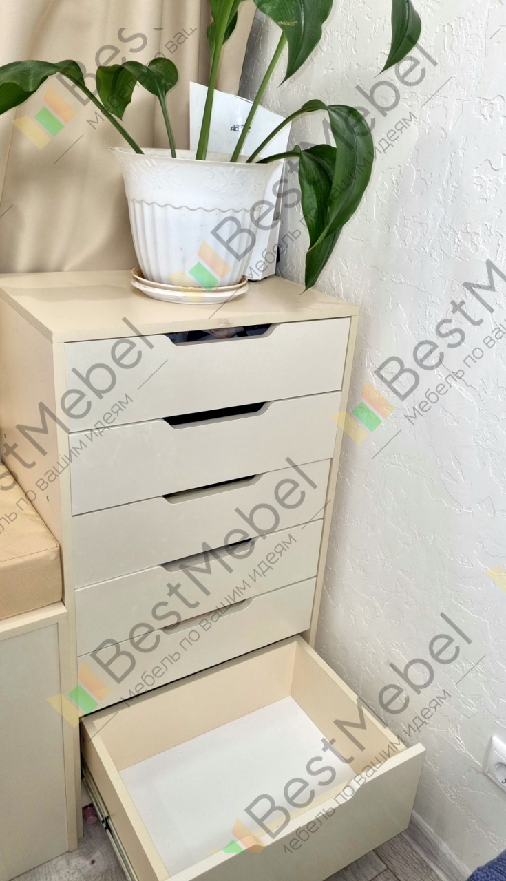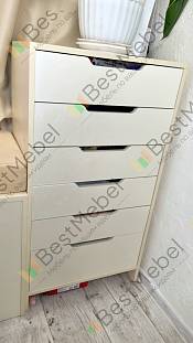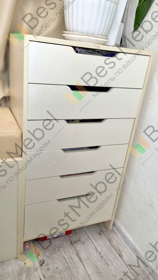 Комод потрясающий. Делали по своим параметрам вплоть до миллиметров и благодаря этому встал идеально. Направляющие брали шариковые (не стандартные ). Товаром довольны. Муж собирал комод сам. Заказ № 00000238699
