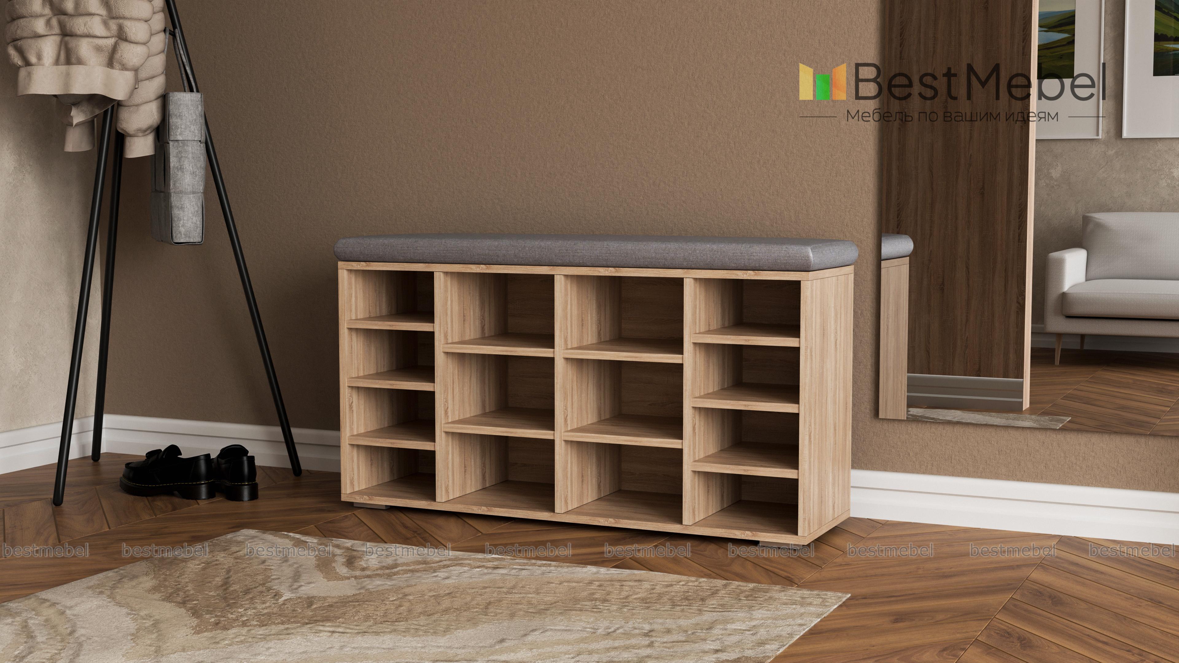 Обувница Аккорд 2 BMS представляет собой вместительный стеллаж и будет гармонично смотреться в просторных помещениях. Среди преимуществ открытой модели – компактное хранение повседневной обуви всех членов семьи, возможность быстро найти нужную пару и вентиляция полок. Удобная система хранения из ниш разной высоты дополнена широким сиденьем с мягкой тканевой обивкой, которое позволит сэкономить на лишней мебели. Купить обувницу Аккорд 2 BMS для комфортной современной прихожей приглашаем в наш интернет-магазин.