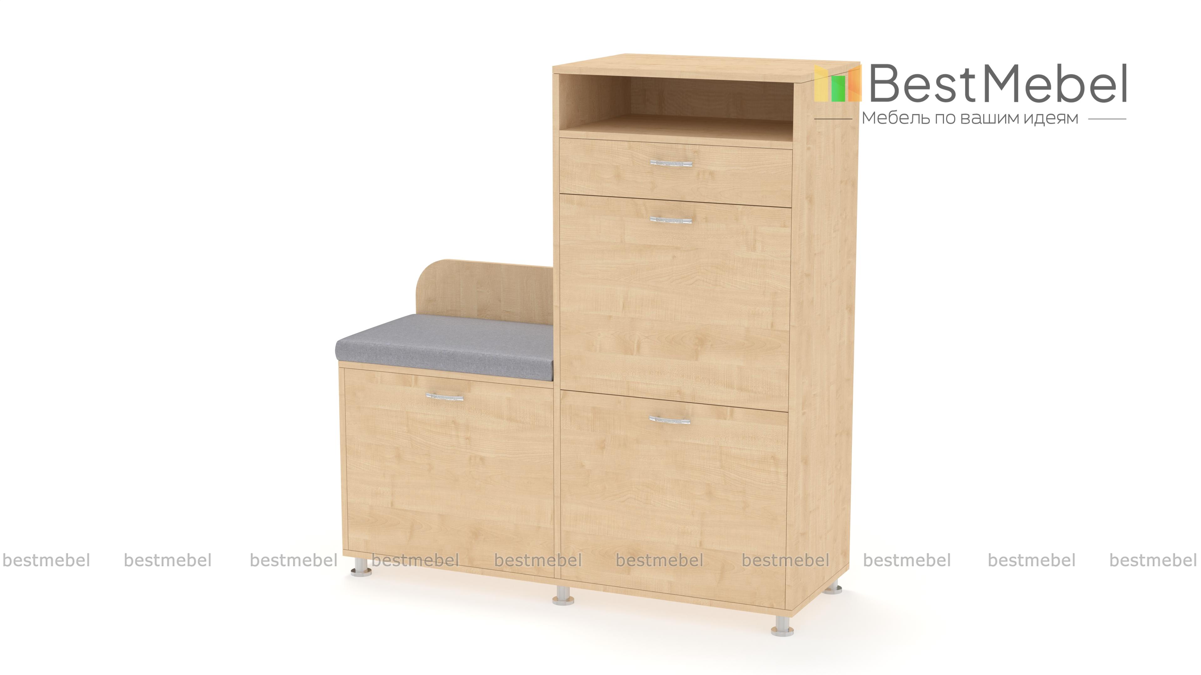 Обувница Чио 5.10 BMS станет выбором тех, кто ценит в мебели функциональность и поможет сэкономить пространство. Комбинированная модель оборудована тремя откидными отделениями под обувь, выдвижным ящиком и нишей для хранения уходовых средств, а также сиденьем с мягкой обивкой и безопасно скругленной спинкой. Обувница располагается на регулируемых опорах и выполнена в нейтральных древесных тонах. Купить обувницу Чио 5.10 BMS для комфортной прихожей приглашаем в наш интернет-магазин.