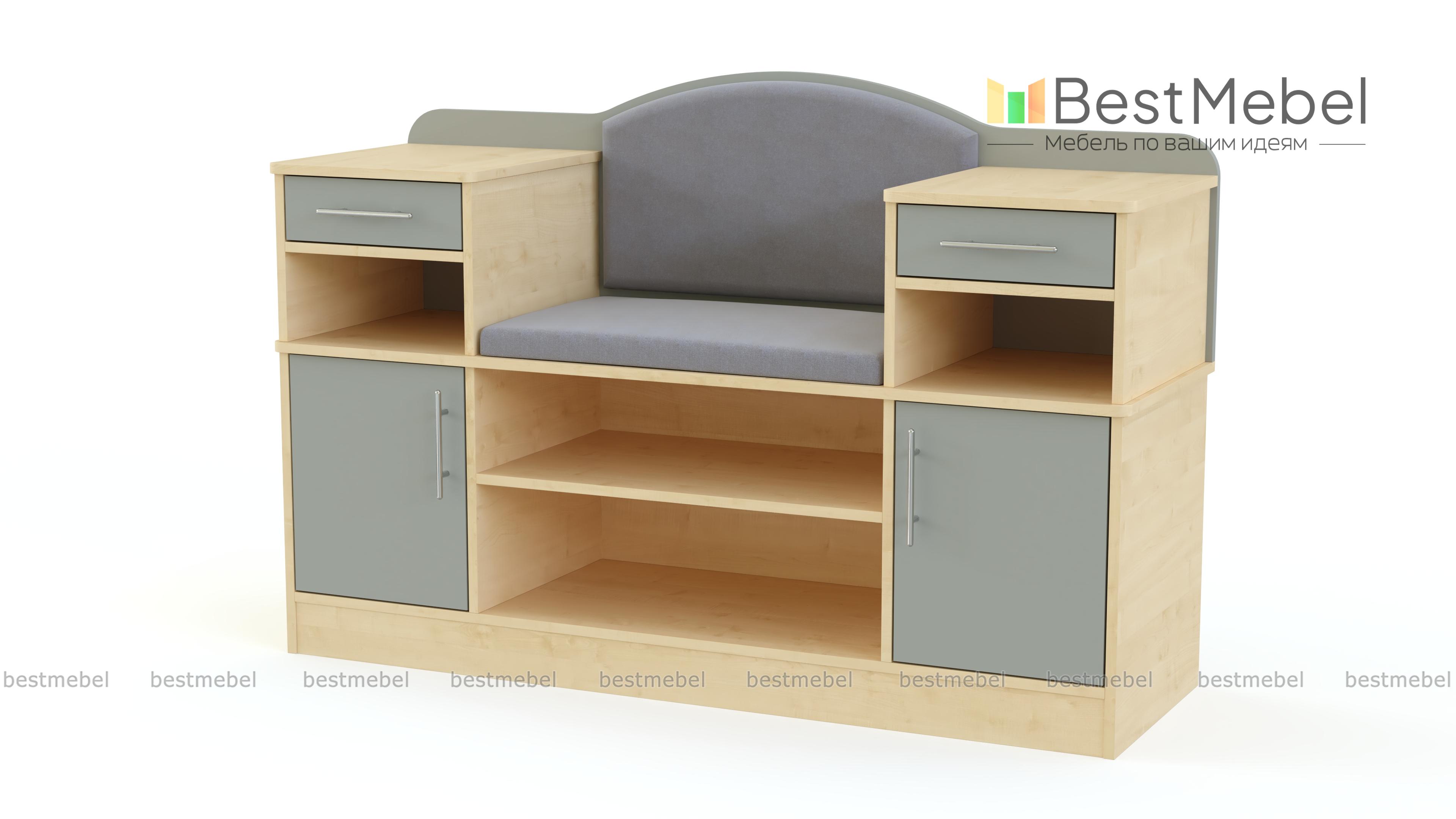 Обувница Дана BMS объединила продуманную систему хранения и комфортное сиденье. Многофункциональная модель оборудована открытыми обувными полками, распашными отделениями, выдвижными ящиками и нишами для хранения аксессуаров и мелочей. Спинка сиденья с мягкой обивкой в ткани элегантно скруглена. Выполненная в серо-бежевой гамме, обувница гармонично дополнит современные прихожие. Купить обувницу Дана BMS и эффективно использовать пространство вам поможет наш интернет-магазин.