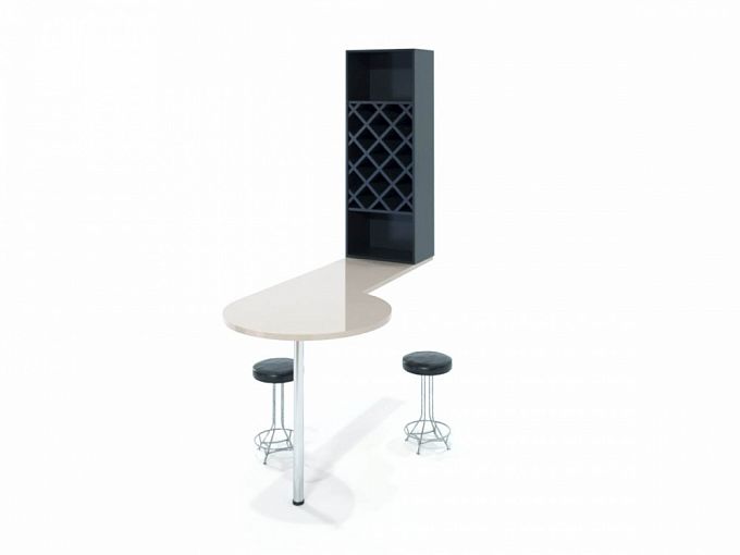 Барная стойка Крус-12 BMS получила свое название благодаря оригинальной форме рабочей поверхности. Пристенная модель с округлой столешницей на хромированной регулируемой опоре компактна и сможет разместить двух человек. Для хранения бутылок и бокалов предусмотрен стеллаж. Актуальный дизайн стойки делает ее отличным выбором для современных кухонь и студий. Купить барную стойку Крус-12 BMS, выполненную в контрастной черно-бежевой гамме, приглашаем в наш интернет-магазин.
