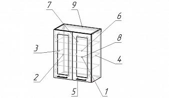 Шкаф верхний 2 двери со стеклом Агава BMS