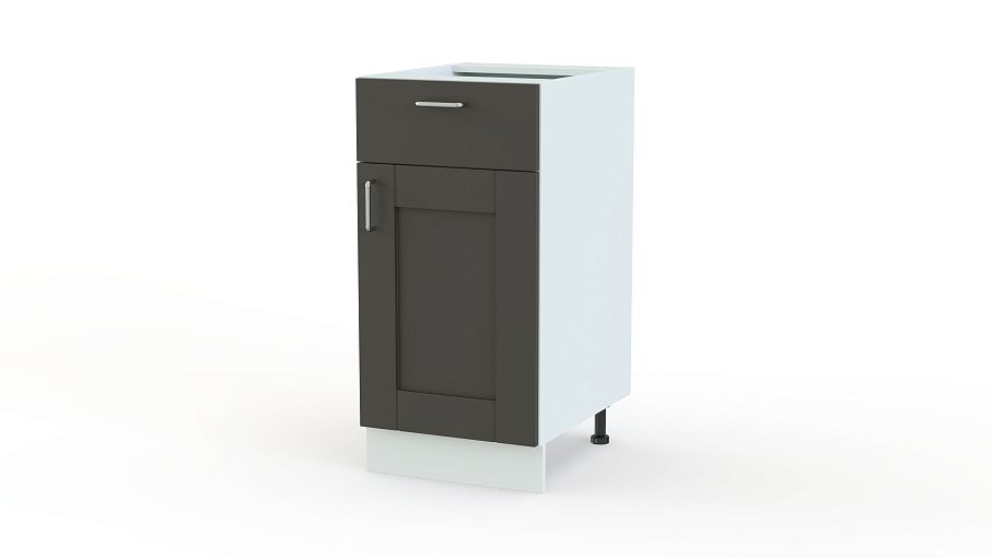 Шкаф нижний с 1-ой дверцей и ящиком Лофт BMS подойдет для меблировки современных кухонь и дополнит ряд модулей из популярной экономичной серии. Комбинированная конструкция, включающая выдвижной ящик и распашное отделение с полкой, оптимально подходит для размещения столовых приборов и крупных предметов. Фрезерованный фасад практичной расцветки в графитовых тонах отличается износостойкостью и надолго сохранит эстетичный вид. Купить шкаф нижний с 1-ой дверцей и ящиком Лофт BMS вы сможете недорого в нашем интернет-магазине.