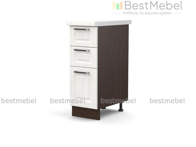 Шкаф нижний с 3-мя ящиками Европа BMS отличается компактными размерами и отличной вместительностью. Узкая модель оборудована тремя выдвижными ящиками – двумя малыми и одним глубоким для хранения столовых приборов и прочих кухонных принадлежностей. Фасады светлых тонов декорированы фрезеровкой и дополнены практичными ручками-скобами с вставками. Шкаф устойчив за счет регулируемых опор, закрытых цоколем. Купить шкаф нижний с 3-мя ящиками Европа BMS, подобрав нужные параметры, вы сможете в нашем интернет-магазине.
