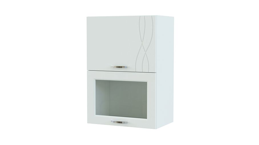 Шкаф-витрина навесной Софит BMS гармонично объединяет достоинства классики и современные тенденции. Шкаф станет оригинальным дополнением верхнего ряда модульного гарнитура и сделает композицию визуально легче. Модель оборудована двумя отделениями с откидными дверцами – с глухим фасадом и застекленным. Просторные внутренние отделения разместят посуду, чай или кофе, а украшением интерьера станут нежные матовые поверхности с фрезеровкой и вставка из прозрачного стекла. Купить шкаф-витрину навесной Софит BMS приглашаем в наш интернет-магазин.