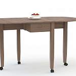 Кухонный стол Ксандра 2 BMS легко впишется даже в элегантные классические интерьеры. В сложенном виде модель представляет собой тумбу с широкой столешницей, выдвижным ящичком для мелочей и высокими опорами, дополненными колесиками для мобильности. Две складные книжкой скругленные створки превращают тумбу в небольшой столик или просторный обеденный, эффектной овальной формы. Купить кухонный стол Ксандра 2 BMS, выполненный в темном оттенке, приглашаем в наш интернет-магазин.