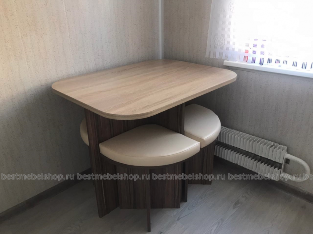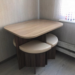Заказ 00000697638. Действительно, необычный дизайн. Мы с мужем восторге. На кухне экономит место. Очень удобен и практичен. Цена и качество хорошее. Менеджер, молодец! Подсказал в выборе ткани на табурет и попал в точку. Телефон завис в это время, не могла ориентироваться в выборе ткани. Огромное ему спасибо, за внимательность, чуткость, знание своего дела! Доставка быстрая, не смотря на то, что в дороге пробили колесо. Всё доставлено вовремя.Собрали сами, всё без проблем. Будем ещё заказывать. 😊