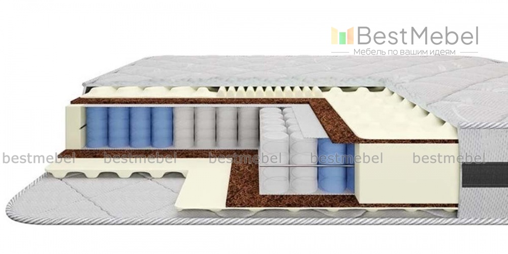 Матрас Ника состоит из уникального блока с так называемыми «карманными пружинами». Многочисленные пружины зафиксированы в чехлы, края которых запаиваются, благодаря чему, исключается разрыв нитей и выскакивания пружин наружу. Материал для чехлов пропускают воздух, не взаимодействует с микроорганизмами и продлевают срок эксплуатации пружин. Система пружин не создаёт скрипов и волн на поверхности изделия. Верхний слой является защитным, поэтому он выполняется из высококачественного материала. Купить матрас Ника в нашем мебельном магазине можно по низкой цене.