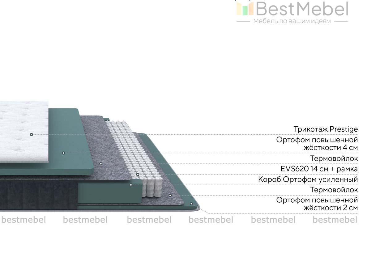 Матрас Prestige Medium Latte односторонний и не требует переворачивания. В основе конструкции матраса — независимый блок EVS620 с усиленными пружинами и качественной анатомической поддержкой. Наполнитель из пены высокой жесткости Ортофом изолирован от металлических частей слоями термовойлока. Пышный трикотажный чехол простеган на объемном волокне и ППУ, бурлет из микровелюра выполнен в цвете Latte. Купить матрас Prestige Medium Latte вы сможете на сайте нашего интернет-магазина.