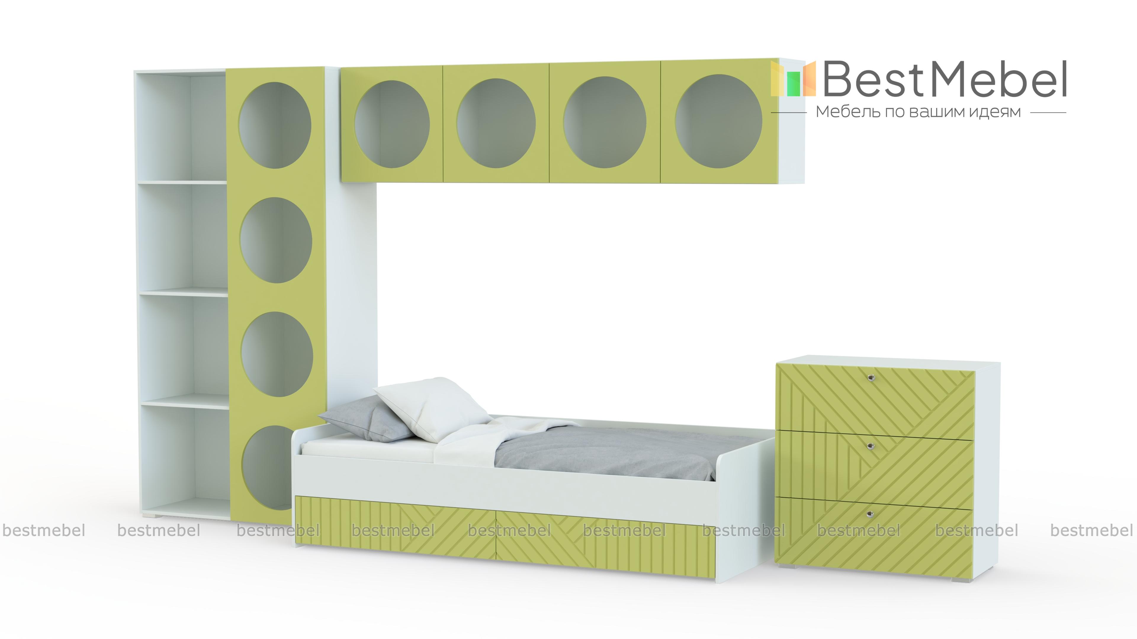 Детская комната Авелин 6 BMS сочетает практичность с современной эстетикой. Композиция из стеллажа, двух навесных полок, кровати с ящиками и бельевого комода позволяет выделить зону отдыха и удобно разместить вещи ребенка. Природные оттенки в отделке создают уютную атмосферу, а динамики дизайну придают круглые вырезы и геометрический рисунок. Купить детскую комнату Авелин 6 BMS вы сможете на нашем сайте, подобрав необходимые размеры, цвета и тип ручек.