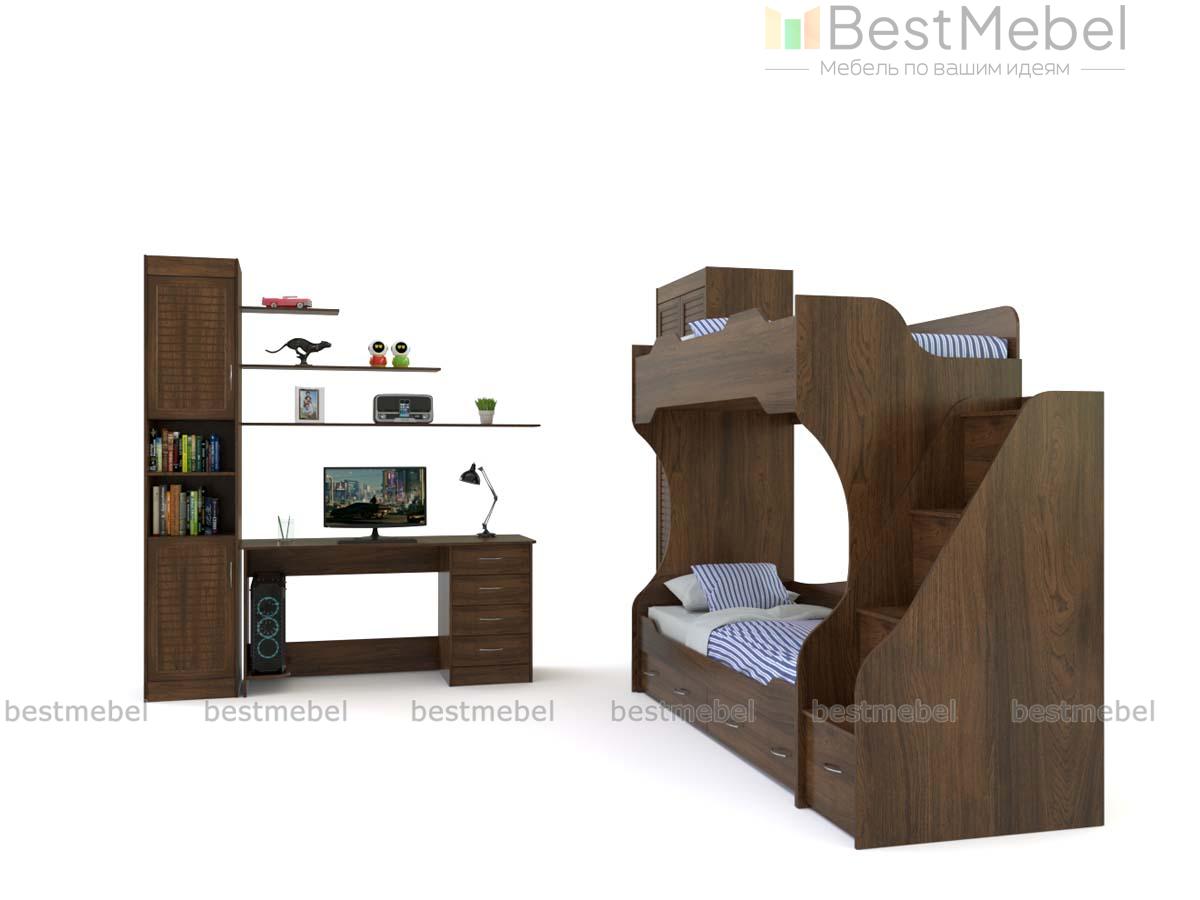 Детская комната Коралина 7 BMS оборудована всем необходимым для комфортного сна, учебы и хранения вещей двоих детей. В комплект входят кровать-чердак с приставной лестницей-комодом и расположенной на первом ярусе софой с бельевыми ящиками, распашной платяной шкаф, письменный стол, навесные книжные полки и комбинированный пенал. Выполненные в светлых тонах, предметы декорированы по фасаду горизонтальной фрезеровкой. Купить детскую комнату Коралина 7 BMS и правильно организовать пространство вам поможет наш интернет-магазин.