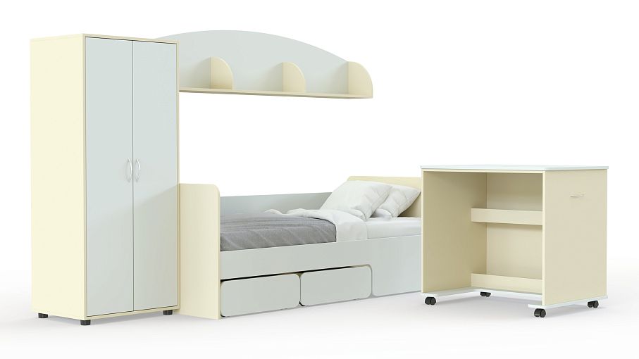 Детская комната Миф 26 BMS оборудована всем необходимым для комфортного отдыха, учебы и хранения вещей. Композиция с белыми матовыми фасадами – отличный выбор для комнаты девочки, сочетающий в себе современный дизайн, функциональность и безопасность. В комплект входят кровать с выкатными ящиками для игрушек или постельных принадлежностей, распашной платяной шкаф, навесная полка для книг и мобильный письменный столик. Купить детскую комнату Миф 26 BMS приглашаем к нам в интернет-магазин.
