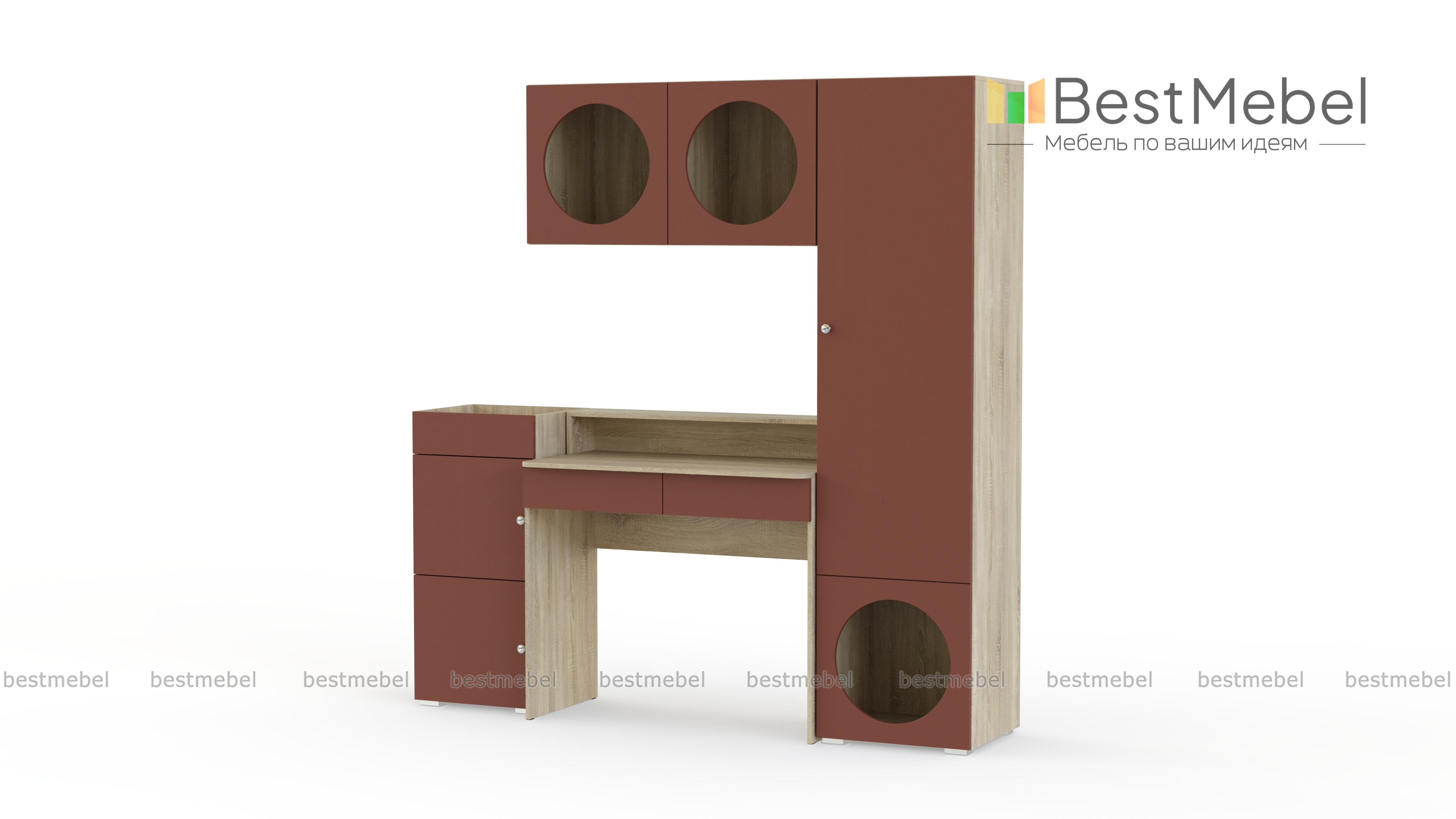 Детская стенка Авелин 1 BMS создаст эстетичное пространство для учебы и творчества. Геометрический дизайн модулей прекрасно сочетается с темным оттенком фасадов и нейтральным, базовым цветом корпуса. Комплектация, подходящая для небольшой комнаты, включает в себя компактный стол с нишей и тумбу, шкаф-пенал и подвесную полку, оборудованную отсеками с круглыми вырезами. Купить детскую стенку Авелин 1 BMS вы сможете в нашем интернет-магазине, по желанию поменяв размеры, цвет и тип ручек.
