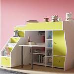 Кровать-чердак Лёвушка 7 BMS оборудована комфортным и безопасным спальным местом с бортиками, а расположенные на первом ярусе распашной шкафчик, выдвижная лестница-комод, стеллажи и выкатной столик позволят компактно разместить вещи ребенка и организовать рабочее место. Модель скруглена по углам, выполнена из экологичных материалов и отличается широким выбором цветовых решений. Купить кровать-чердак Лёвушка 7 BMS по доступной цене приглашаем к нам в интернет-магазин.