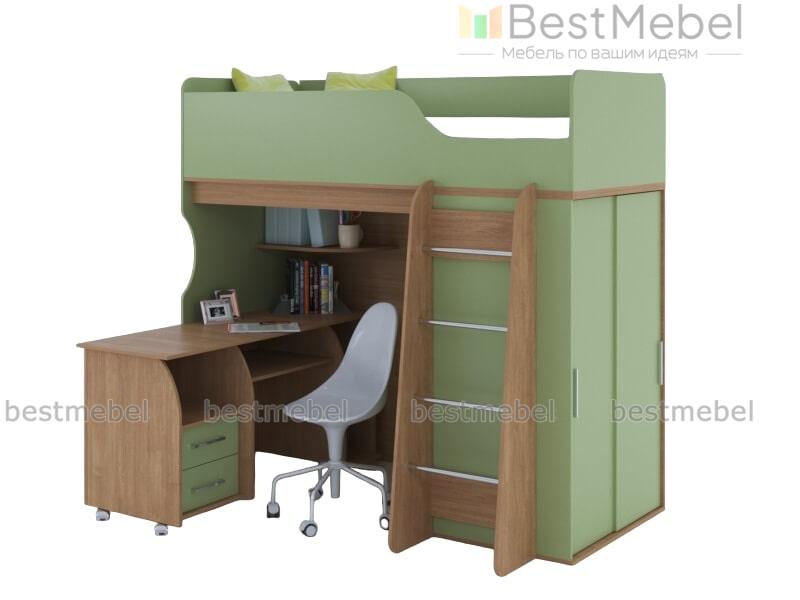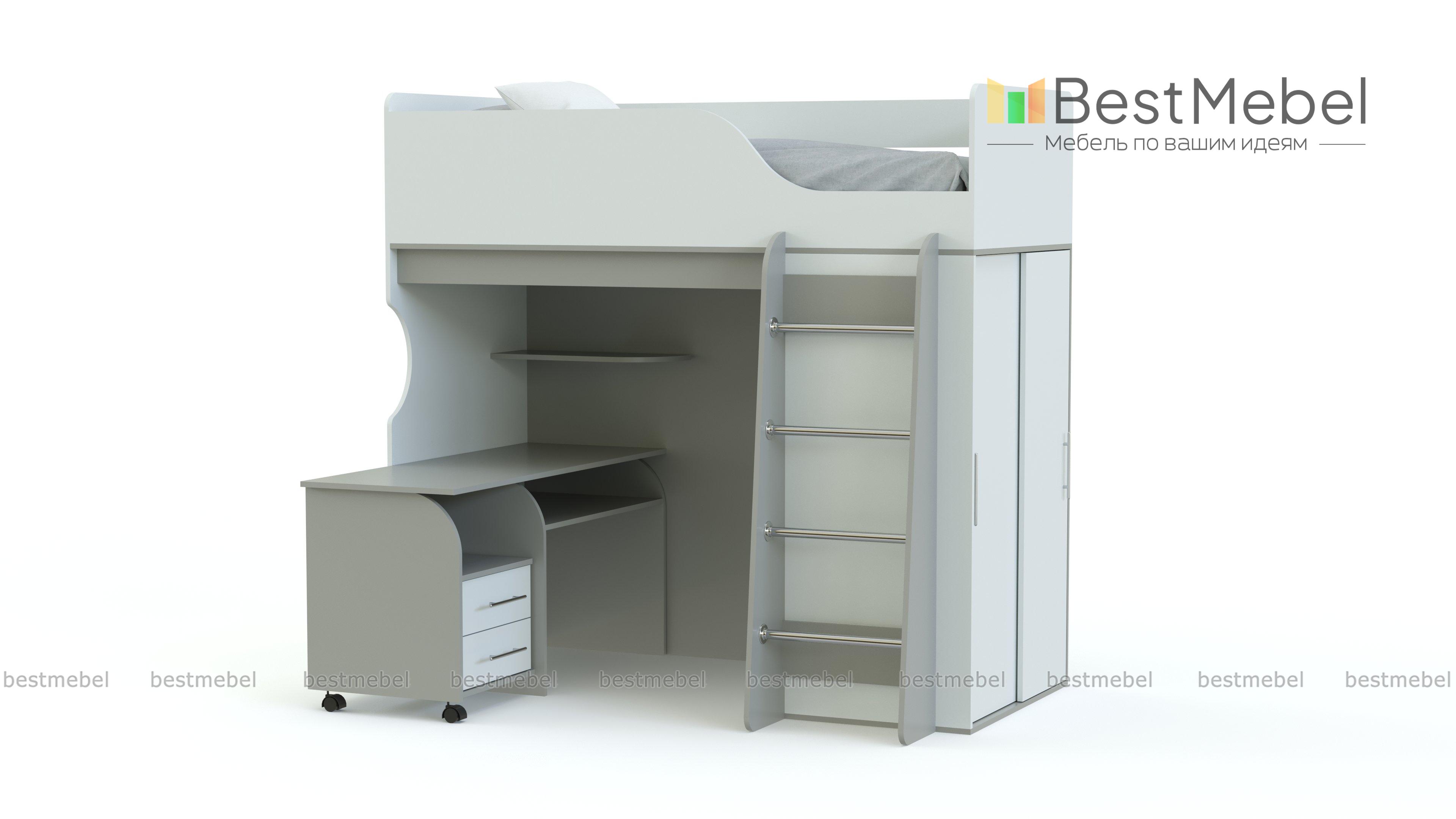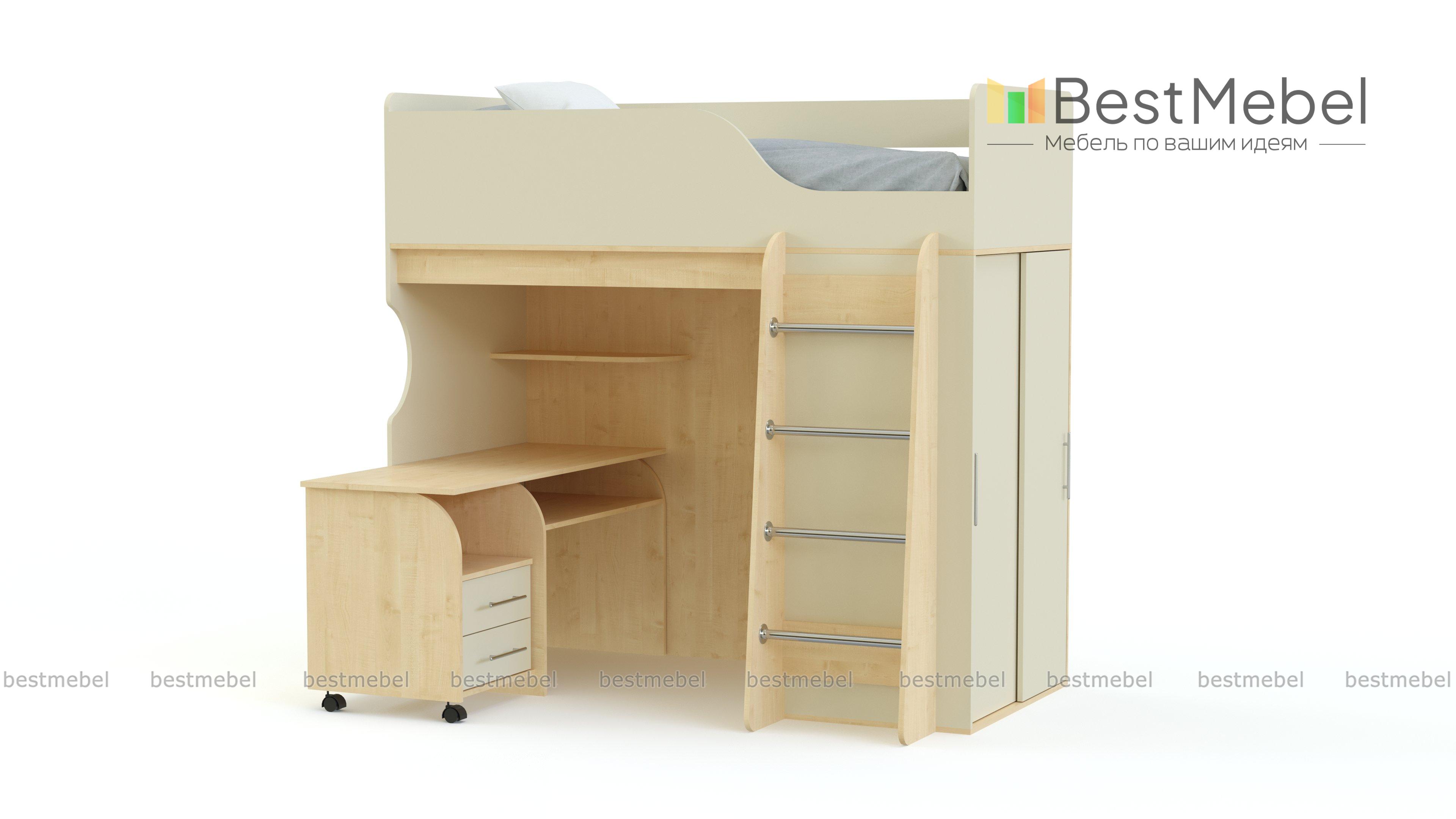 Кровать-чердак Мишутка BMS обеспечит ребенка комфортным спальным местом, письменным столом для учебы и творческих занятий и шкафом-купе для размещения гардероба, одновременно сэкономив полезную площадь. Незаменимая в современных малогабаритных квартирах, модель отличается надежностью, ярким дизайном и безопасностью. Износостойкие поверхности просты в уходе и надолго сохранят эстетичный вид. Купить кровать-чердак Мишутка BMS вы сможете в нашем интернет-магазине, подобрав необходимые параметры.