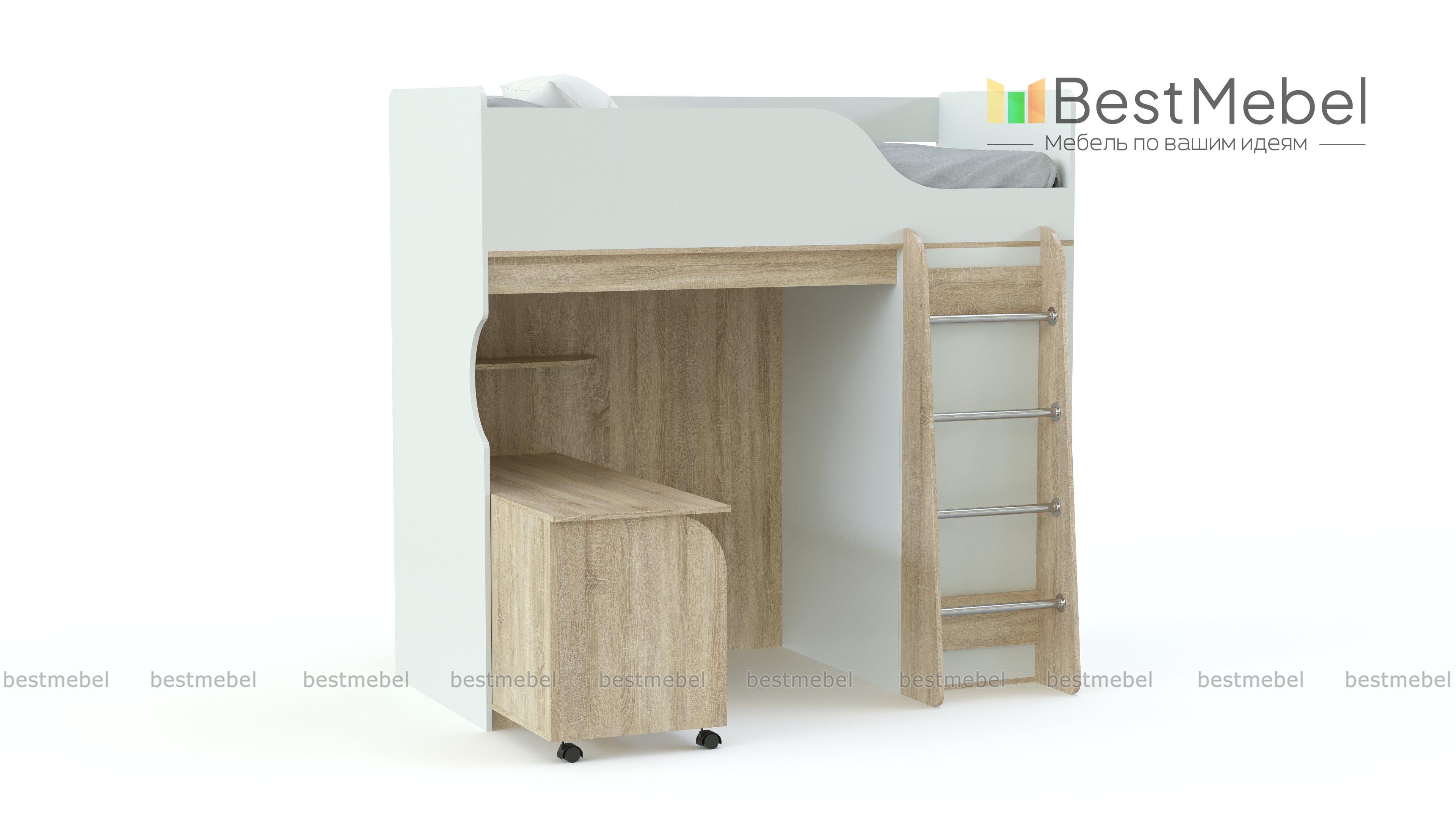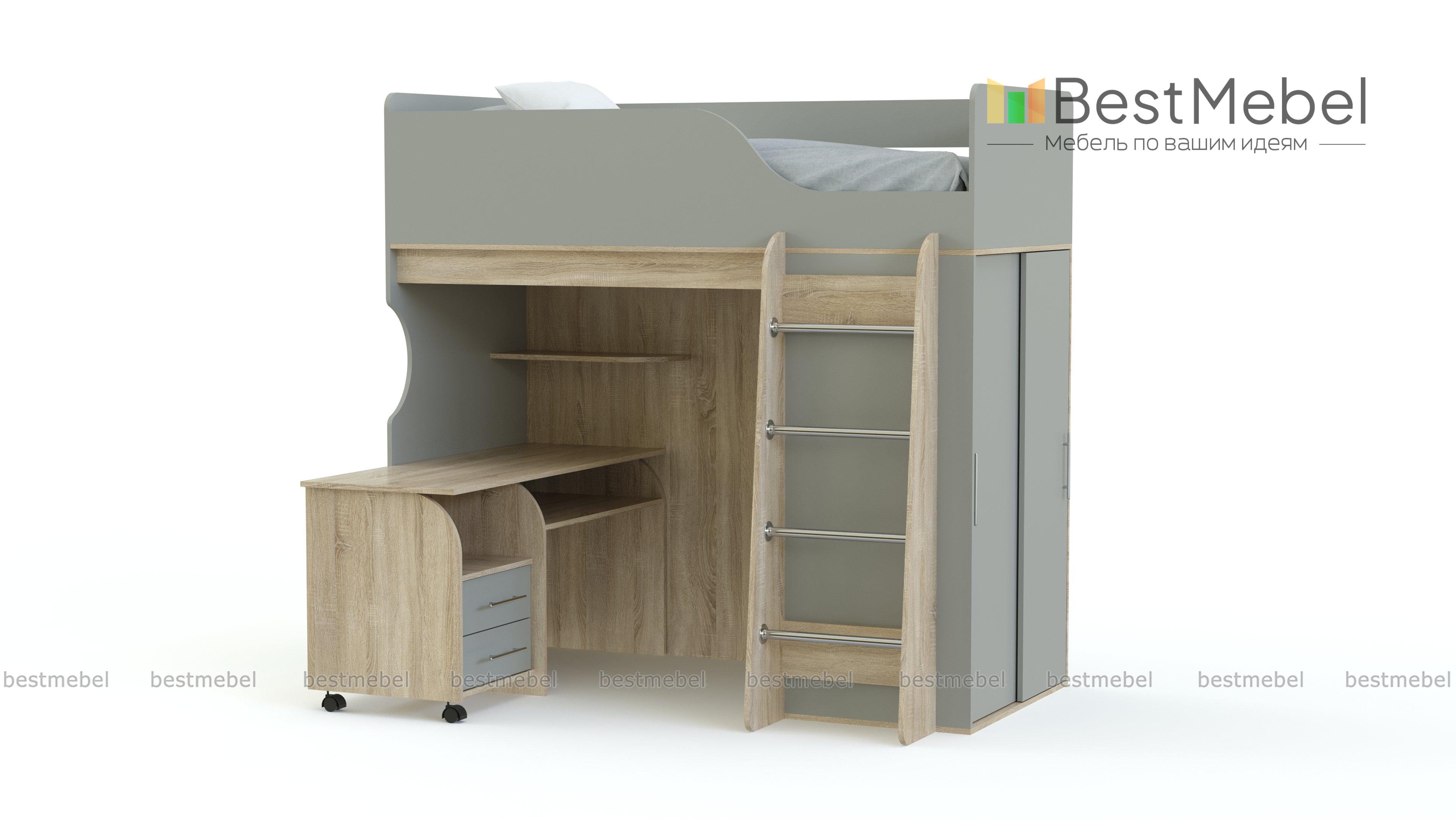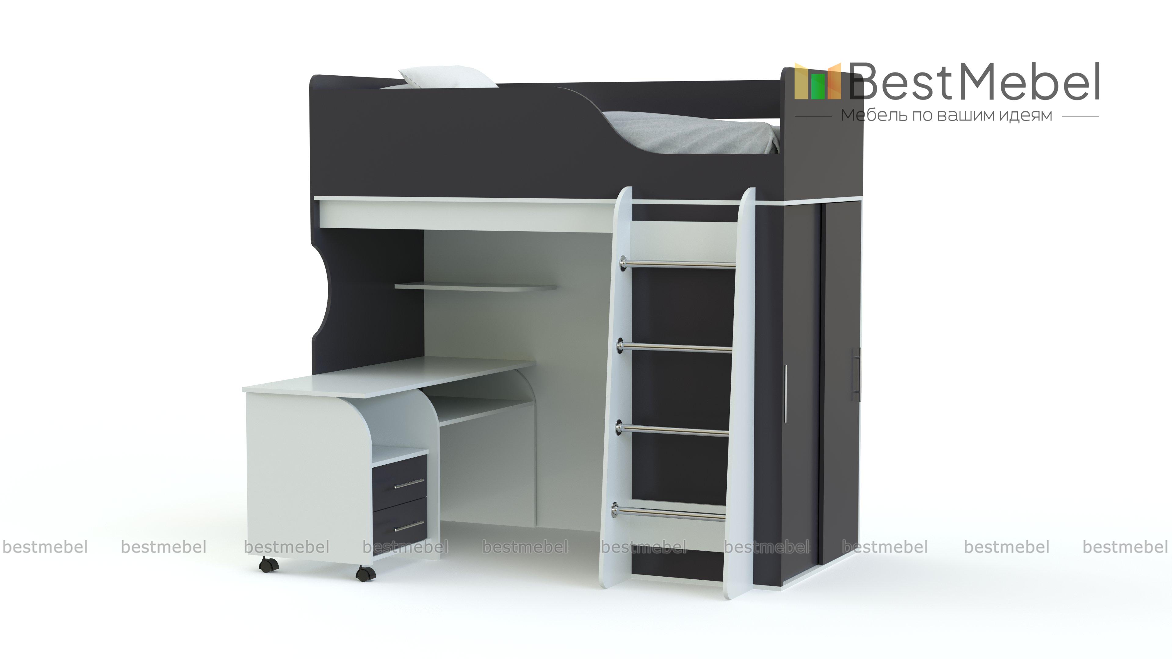 Кровать-чердак Мишутка BMS обеспечит ребенка комфортным спальным местом, письменным столом для учебы и творческих занятий и шкафом-купе для размещения гардероба, одновременно сэкономив полезную площадь. Незаменимая в современных малогабаритных квартирах, модель отличается надежностью, ярким дизайном и безопасностью. Износостойкие поверхности просты в уходе и надолго сохранят эстетичный вид. Купить кровать-чердак Мишутка BMS вы сможете в нашем интернет-магазине, подобрав необходимые параметры.