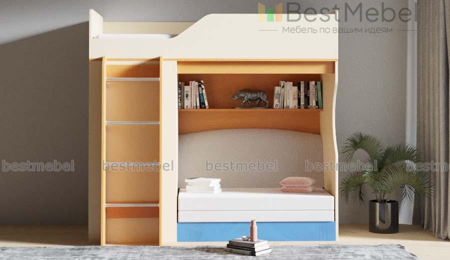 Кровать-чердак с диваном Лесси 23 BMS станет оптимальным решением для малогабаритных квартир. Двухъярусная модель занимает совсем немного места и оборудована всем самым необходимым для полноценного отдыха и хранения детских вещей. Просторное спальное место располагается на втором ярусе, а раскладной диванчик, книжная полка и торцевой шкаф-купе для одежды – на первом. Легко забраться в постель поможет лестница с металлическими перекладинами. Купить кровать-чердак с диваном Лесси 23 BMS приглашаем в наш интернет-магазин по доступной цене.
