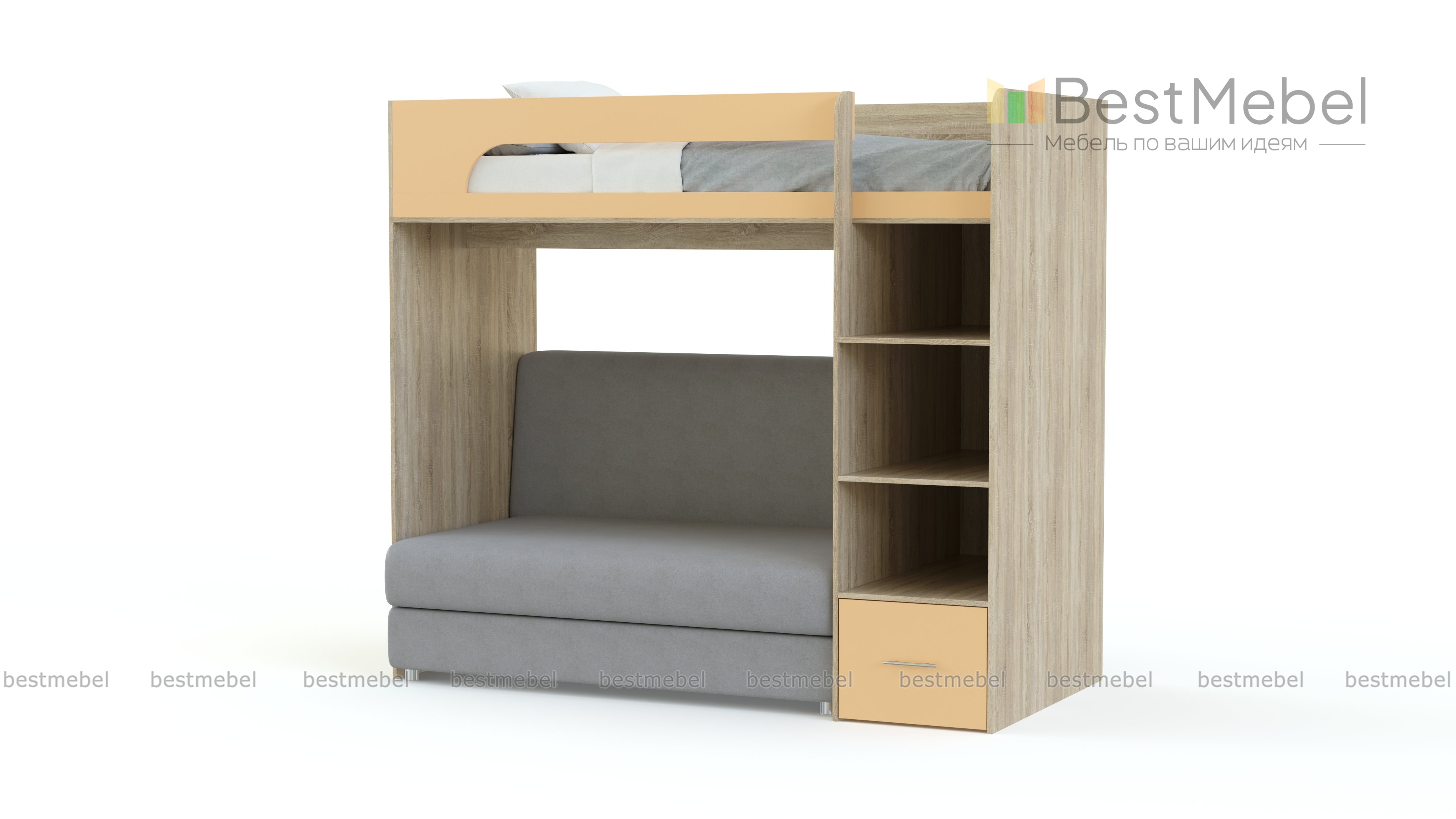 Кровать-чердак с диваном Сюрприз 24 BMS отличается компактными размерами, визуальной легкостью и станет оптимальным решением для меблировки небольшой современной детской. Двухъярусная кровать оборудована спальным местом с бортиком на верхнем ярусе, расположенным в нише раскладным диванчиком, а также лестницей-стеллажом с ящиком для игрушек в основании. Купить кровать-чердак с диваном Сюрприз 24 BMS вы сможете в нашем интернет-магазине, подобрав наиболее подходящее цветовое решение.