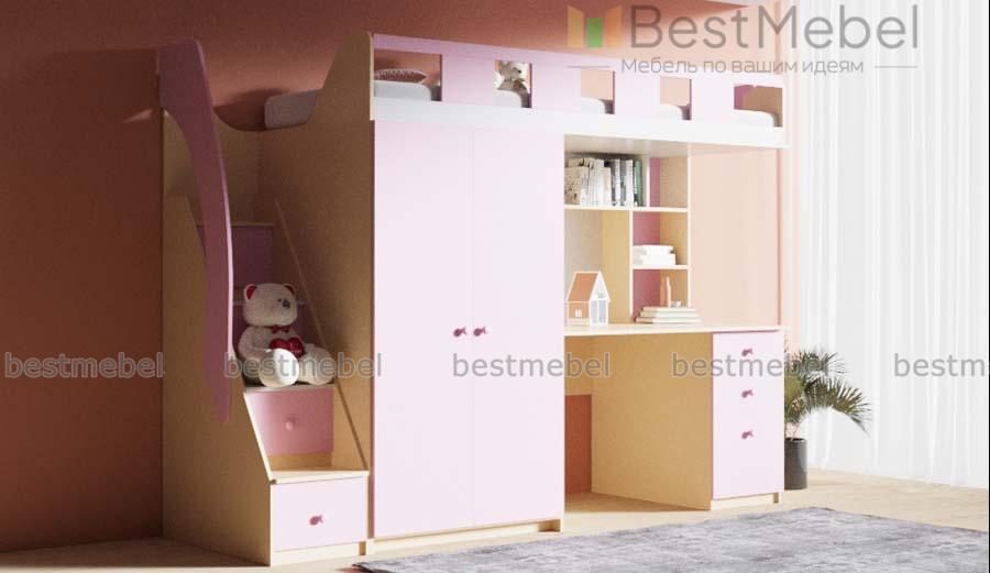 Кровать-чердак с рабочей зоной Клаус 13 BMS станет практичным решением для экономии пространства детской. На втором ярусе располагается просторное спальное место с бортиком, а первый занимают рабочая зона с письменным столом и полками, распашной шкафчик для одежды и лестница-комод с ящиками для игрушек и прочих вещей ребенка. Корпус светлых тонов дополняют цветные фасады, углы кровати безопасно скруглены. Купить кровать-чердак с рабочей зоной Клаус 13 BMS приглашаем в наш интернет-магазин.