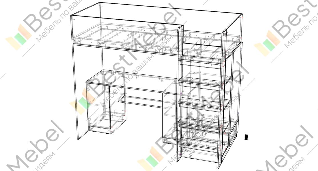 Кровать-чердак Сезам 13 BMS с рамочными фасадами ярких и базовых оттенков легко вписать в комнаты с классическим и современным оформлением. Разместить на небольшой площади спальное место, гардероб и рабочую зону поможет многофункциональная конструкция. В состав комплекта входят кровать с лестницей, письменный стол с двумя тумбами, трехсекционная книжная полка, распашное отделение для одежды, выдвижной ящик и стеллаж. Купить кровать-чердак Сезам 13 BMS по доступной цене приглашаем к нам в интернет-магазин.