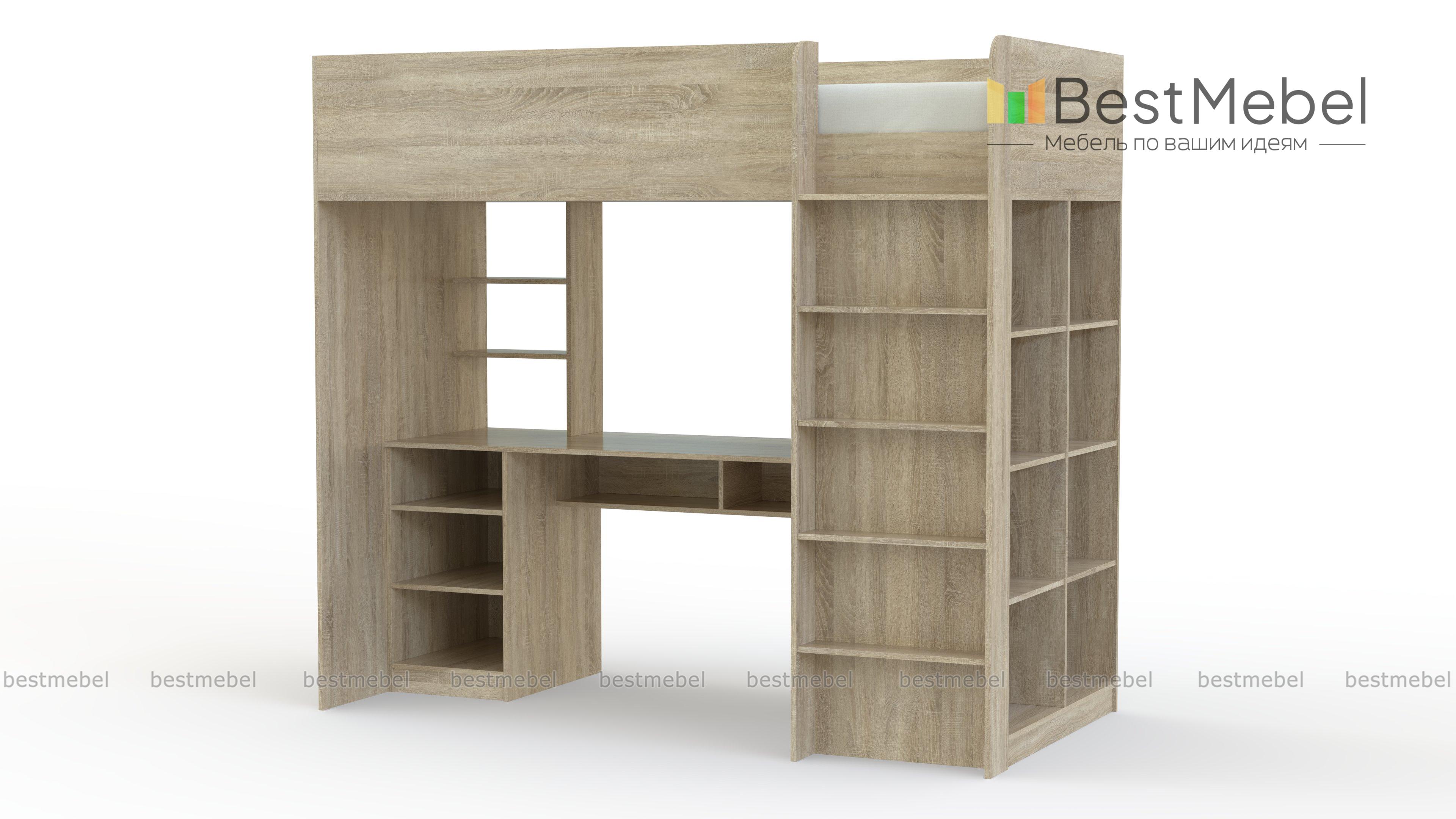 Кровать-чердак Смарти 13 BMS - это одновременно кровать, рабочее место и удобная система хранения. Для экономии пространства спальное место, компьютерный стол с надстройкой и разделенный перегородкой стеллаж расположены на двух ярусах. Изготовленная из качественной ламинированной плиты в базовых цветах, модель легко впишется в пространство современной квартиры и прослужит долго, сохраняя эстетичный вид. Купить кровать-чердак Смарти 13 BMS вы сможете на сайте нашего интернет-магазина.
