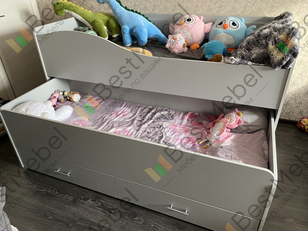 Кровать детям очень понравилась, очень удобно, что есть бортики, дополнительно 2 шкафчика, выбирали между двухъярусной и выдвижной, сделали выбор в пользу данной модели и не пожалели, она не такая высокая и плюс, что второй ребенок спит не на полу, а на уровне с нами за счет нижних ящиков
