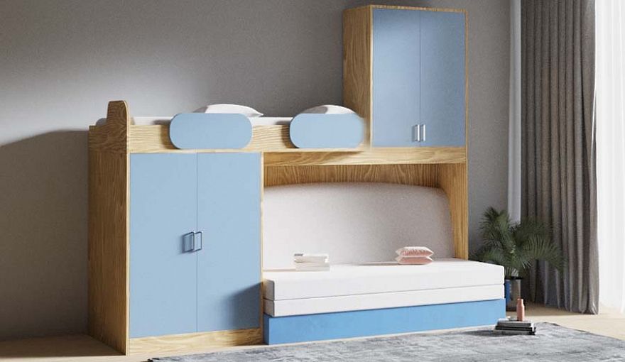 Кровать с диваном Гамма 4 BMS – это комфортная зона отдыха и удобная система хранения для современной детской. Двухъярусная модель оборудована просторным спальным местом и шкафчиком с полками для игрушек и книг на втором ярусе, а на первом расположены раскладной диван и встроенный шкаф для одежды. Корпус в светлых древесных тонах дополняют цветные фасады с ручками-скобами. Купить кровать с диваном Гамма 4 BMS по доступной цене приглашаем к нам в интернет-магазин.