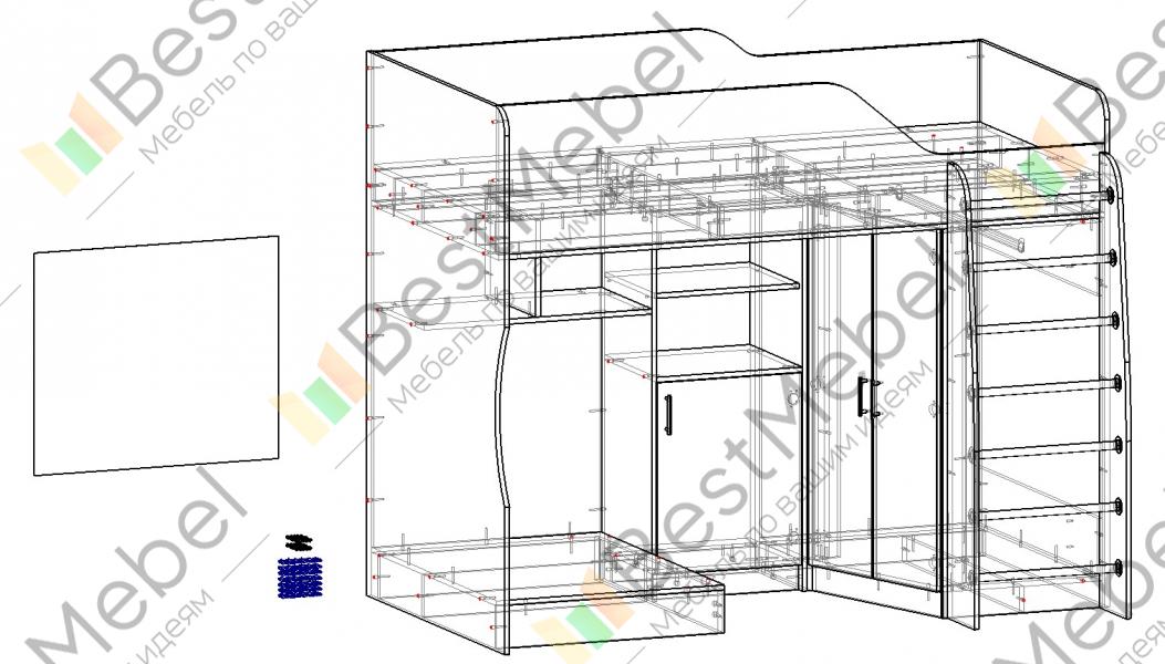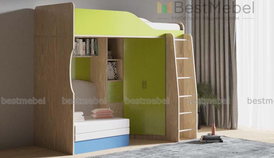 Кровать с диваном Мини 1.1 BMS предназначена для меблировки малогабаритных комнат, позволяя значительно сэкономить пространство. Двухъярусная композиция включает в себя просторное спальное место с защитным бортиком, вертикальную лестницу с хромированными перекладинами, распашной шкаф для одежды, книжный стеллаж и компактный раскладной диван. Фасады в фисташковом глянце просты в уходе и создадут комфортную атмосферу в детской. Купить кровать с диваном Мини 1.1 BMS приглашаем в наш интернет-магазин.