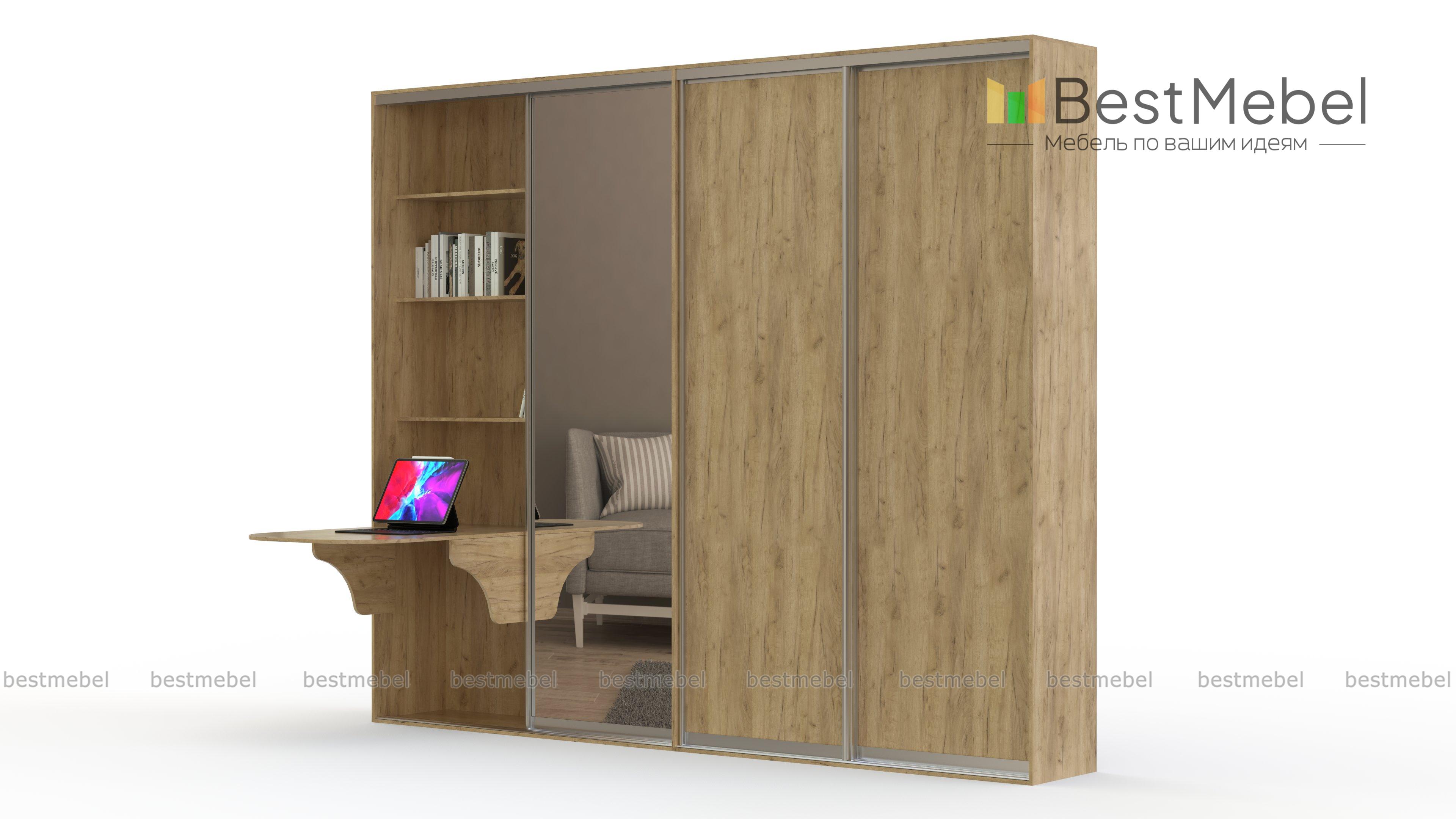 Шкаф-купе с рабочим местом Хилл-1 BMS станет практичным решением для оформления небольших гостиных или спален. Встроенная модель объединила вместительный шкаф-купе и рабочее место, позволяя сэкономить полезную площадь. За одной из дверей шкафа располагаются полки и оригинальный столик, при желании легко трансформирующийся для работы за ноутбуком или письма. Зеркальные дверцы зрительно расширят границы комнаты и удобны для примерок. Купить шкаф-купе с рабочим местом Хилл-1 BMS вы сможете по выгодной цене в нашем интернет-магазине.