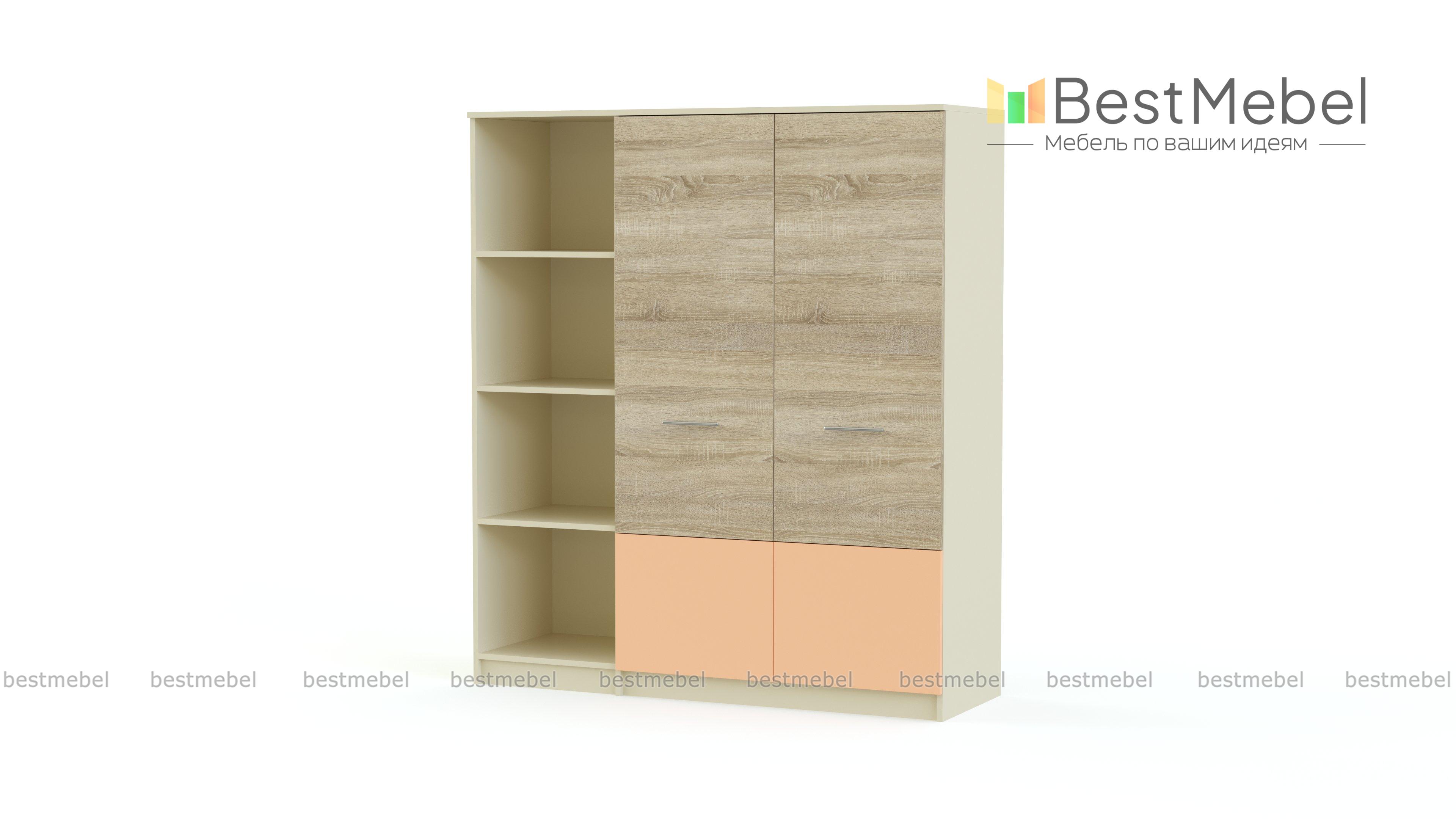 Крупногабаритный комбинированный стеллаж Брайтон 2023 BMS оборудован не только стандартными открытыми полками, но и двухдверным отделением. Лаконичная форма и современный внешний вид позволят легко вписать эту модель в интерьер детской комнаты или офисного помещения. Стеллаж обеспечит аккуратное хранение книгам, игрушкам, предметам гардероба или бумагам. Особенную привлекательность придают ему декорированные цветными матовыми элементами нижние фасады дверей.