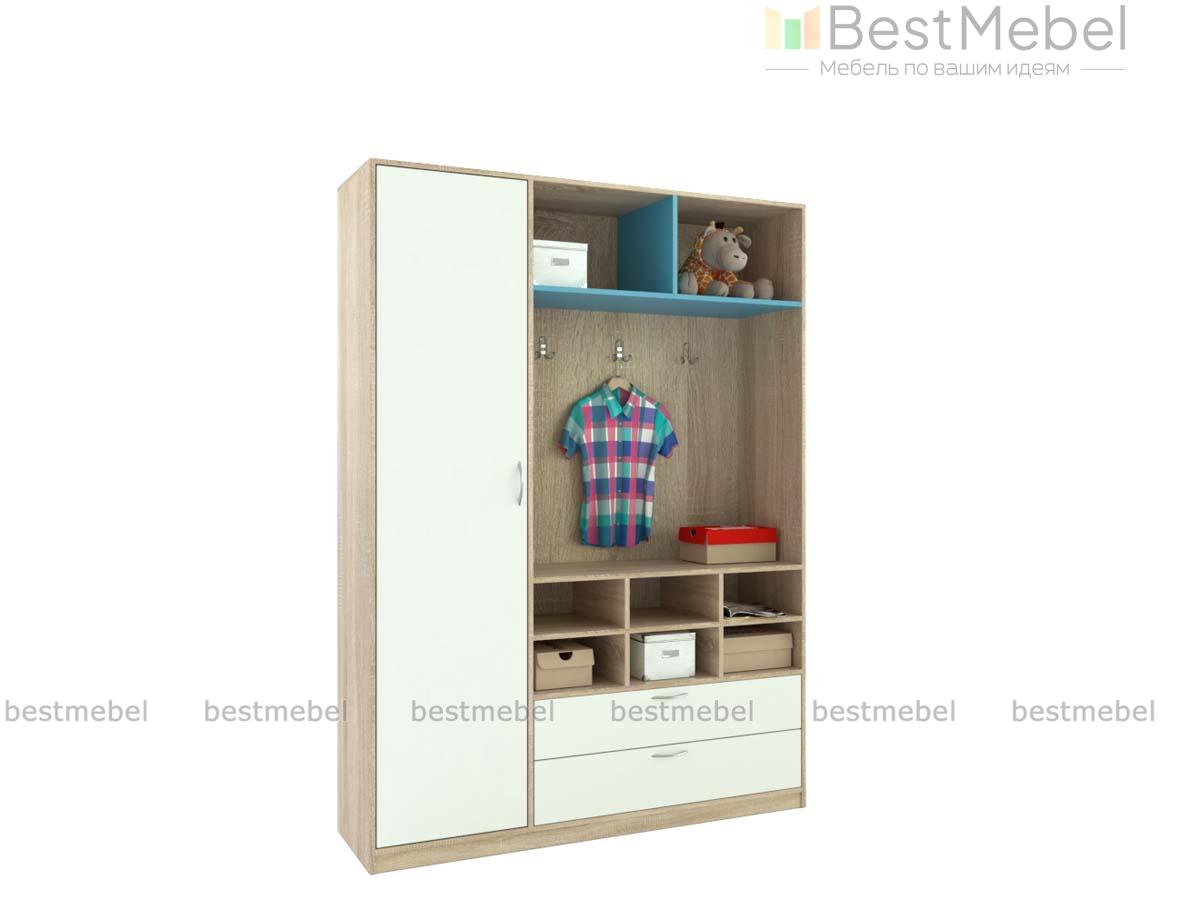Стеллаж Сказка 20 BMS сочетает в себе необходимые мебели для современной детской высокую функциональность и яркий дизайн. Комбинированная модель поможет систематизировать хранение одежды ребенка, принадлежностей для творчества, игрушек и многого другого. Стеллаж оборудован распашным платяным отделением, полками разных размеров, двумя широкими выдвижными ящиками и нишей с открытой вешалкой. Купить стеллаж Сказка 20 BMS, выполненный в сочетании древесных тонов, белого и цветных вставок, приглашаем в наш интернет-магазин.