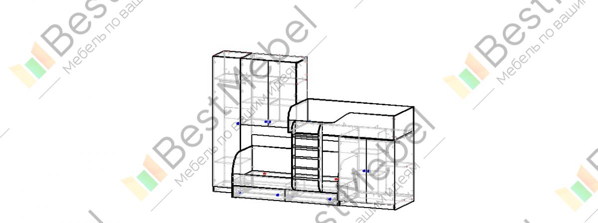 Кровать-чердак Лео BMS, почти полностью занимающая одну из стен комнаты, позволит с максимальной эффективностью использовать доступное пространство. Современная мебельная композиция включает в себя все необходимое для полноценного отдыха и хранения вещей двух детей. В комплекте оборудованное защитными бортиками спальное место второго яруса и софа с бельевыми ящиками на первом, распашной шкафчик с полками и два комбинированных со штангами. Купить кровать-чердак Лео BMS, подобрав оптимальное цветовое решение, вы сможете в нашем интернет-магазине.