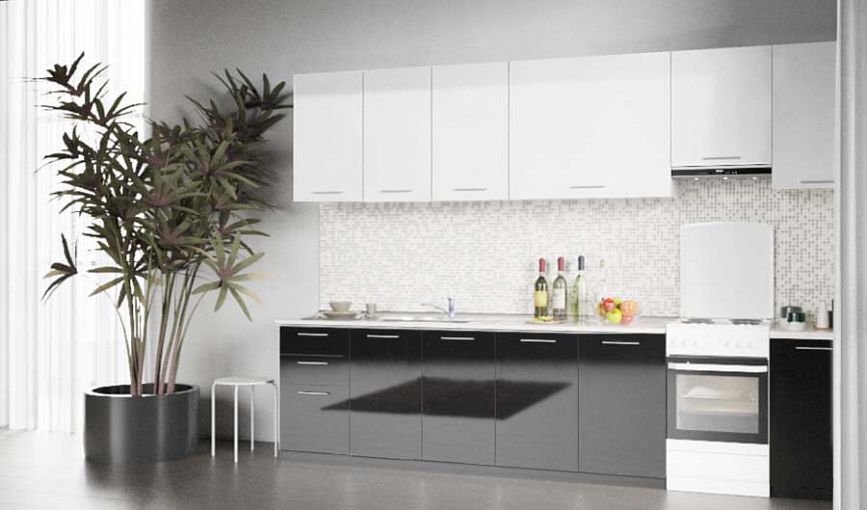 Кухня Артем BMS – это стильная двухцветная модель для небольшой современной квартиры. Прямой гарнитур с глянцевыми черно-белыми фасадами не перегружает помещение лишними деталями и оборудован всем необходимым для комфортной готовки и хранения кухонной утвари. Дверцы глухих распашных отделений и выдвижных ящиков оснащены удобными ручками-рейлингами. Устойчивые к влаге и механическим повреждениям поверхности надолго сохранят эстетичный вид. Купить кухню Артем BMS с учетом необходимых параметров вы сможете в нашем интернет-магазине.