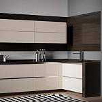 Кухня угловая Гамма 2 BMS – это воплощение эффектного минимализма и современного подхода к организации пространства. Угловая композиция для просторной кухни или студии включает в себя два ряда подвесных модулей, нижний оснащен устойчивыми массивными боковинами, но не смотря на это, модель выглядит невесомой и атмосферной. Для удобной готовки и размещения кухонных принадлежностей кухня оборудована глухими шкафчиками, открытыми полками и износостойкой столешницей. Купить кухню угловую Гамма 2 BMS, подобрав необходимые параметры, приглашаем в наш интернет-магазин.