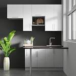Кухня Мини-21 с барной стойкой BMS станет практичным решением для малогабаритной квартиры, студии, загородного дома. Прямая модель включает в себя три напольных и три навесных шкафа для самого необходимого, а в роли обеденного стола и для зонирования может использоваться приставная барная стойка на хромированной опоре. Лаконичные фасады выполнены в белом цвете и гармонично сочетаются с шоколадно-коричневыми столешницами. Купить кухню Мини-21 с барной стойкой BMS по демократичной цене вы сможете в нашем интернет-магазине.
