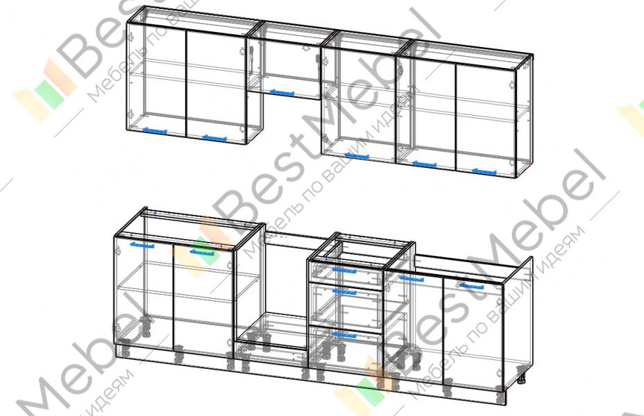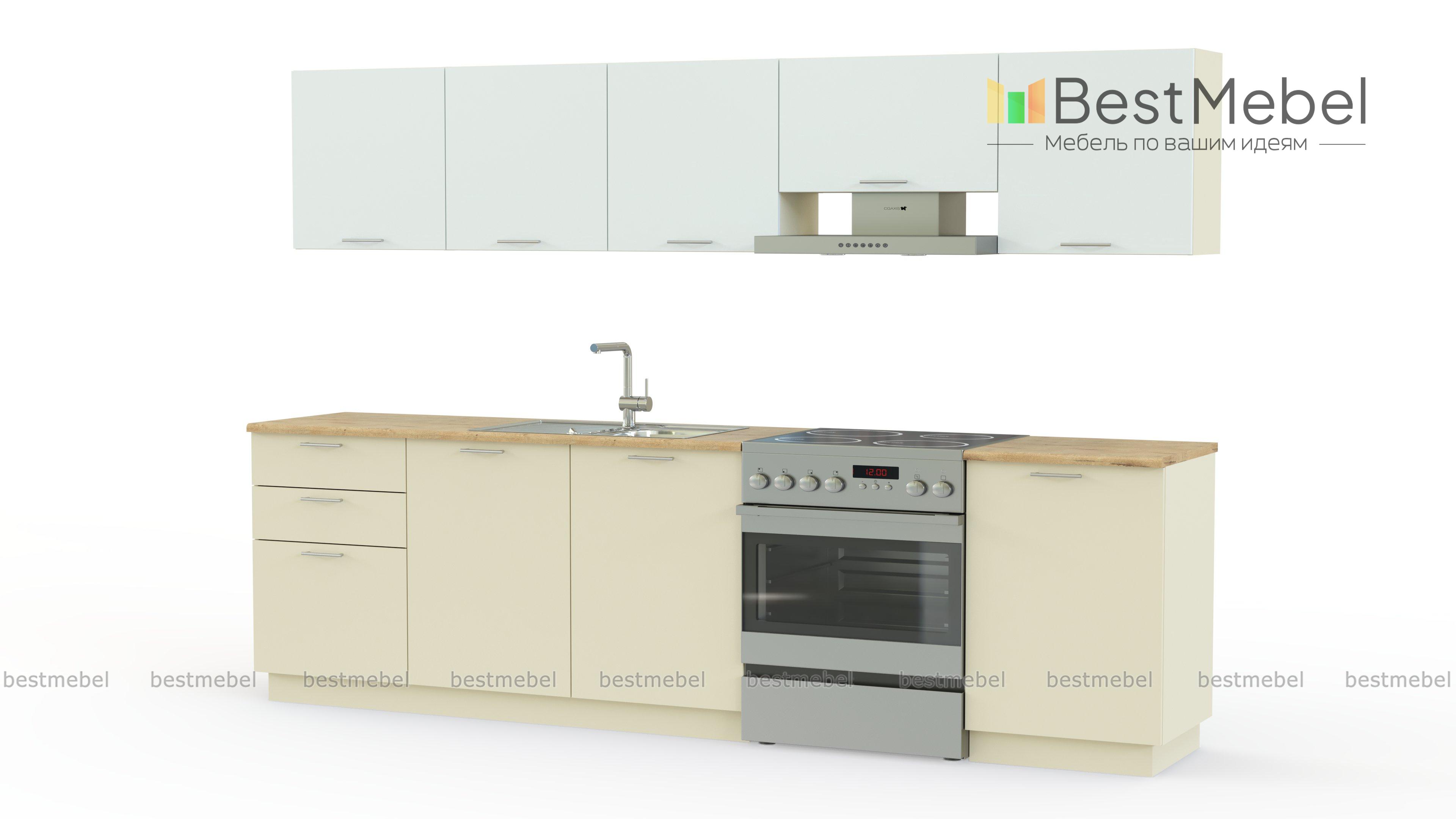 Элегантная современная модель Турин Uniqa BMS может выполнена в разных светлых оттенках, однотонной или в комбинации цветов по вашему выбору. В комплект входят четыре нижних секции и пять верхних, включая небольшой шкафчик для размещения вытяжки. Дизайн лаконичный, дверцы декорированы удобными на кухне ручками-рейлингами. Купить Кухню Турин Uniqa BMS вы можете в нашем магазине по выгодной цене.