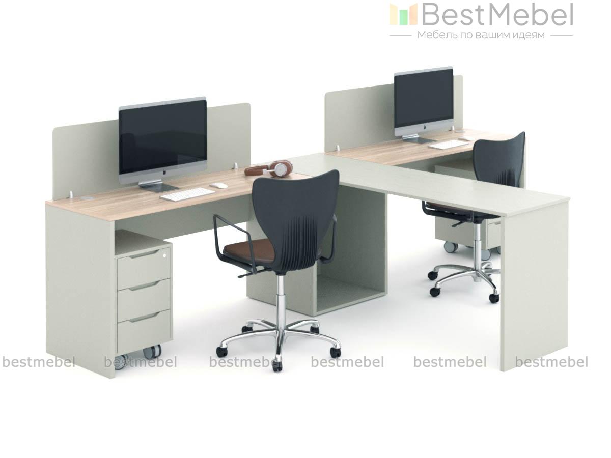 Бенч-система Логика 7 BMS будет востребован в современных опен спейсах и оборудован всем необходимым для комфортной работы двух человек. Модель объединяет две столешницы классической прямоугольной формы, секцию под системный блок и приставной элемент, на котором сможет разместиться оргтехника. Для хранения в зоне быстрого доступа мелочей предусмотрены мобильные благодаря колесикам тумбы с ящиками, а приватность сотрудникам обеспечат настольные перегородки. Купить бенч-систему Логика 7 BMS вы сможете в нашем интернет-магазине по доступной цене.