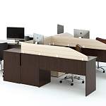Бенч-система Тим 20 BMS – стильное и функциональное решение для современного офиса открытого типа. Практичная конструкция экономична, выгодно использует пространство и создает все условия для продуктивной работы. Система включает в себя четыре угловых стола с просторными прямоугольными столешницами, разделенными перегородками, и выкатные тумбы с ящиками для канцелярских мелочей. Выполненная в контрастных древесных тонах, композиция сделает атмосферу в помещении комфортной. Купить бенч-систему Тим 20 BMS приглашаем в наш интернет-магазин.
