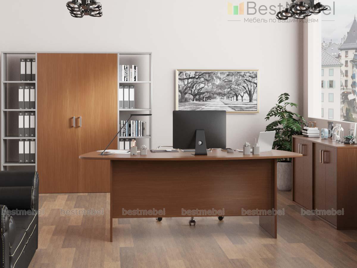 Кабинет руководителя Артос 3 BMS, выполненный в популярном сочетании белого и теплых древесных тонов, будет гармонично смотреться в интерьере современного офиса. Композиция объединила рабочий стол, распашную тумбу и шкафную группу из двух открытых стеллажей и шкафа для документов с глухим фасадом. Простота и надежность конструкции в сочетании с износостойкостью материалов станут гарантией долговечности и эстетичного вида. Купить кабинет руководителя Артос 3 BMS вы сможете в нашем интернет-магазине по доступной цене.