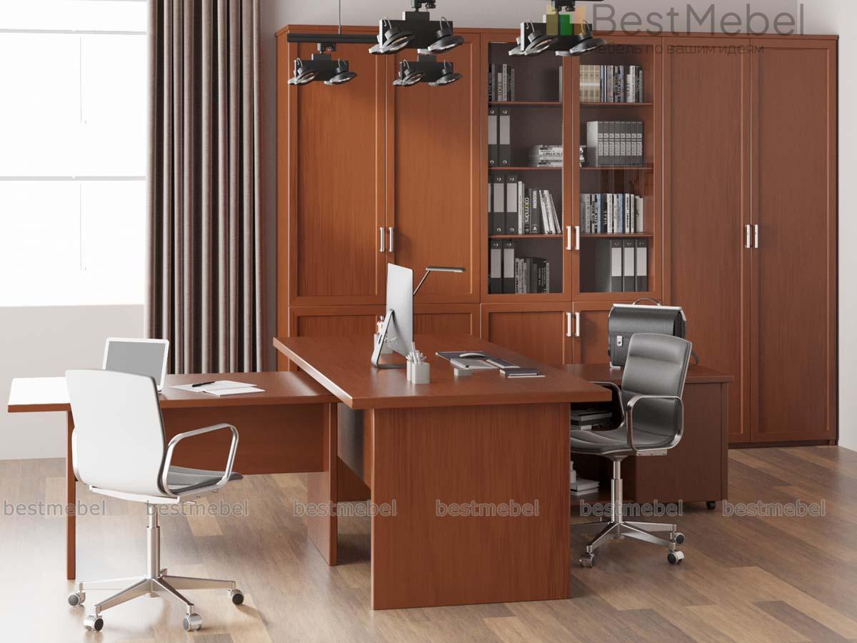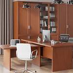 Кабинет руководителя Марио 4 BMS – это элегантная и функциональная современная классика в темном древесном оттенке. Модульная композиция позволит полностью оборудовать помещение всем необходимым для комфортной работы. В комплекте рабочий стол, дополненный стандартной тумбой с выдвижными ящиками, сервисной тумбой и брифингом, два шкафа для документов – с глухими и застекленными дверцами, а также распашной гардеробный шкаф. Купить кабинет руководителя Марио 4 BMS приглашаем в наш интернет-магазин.