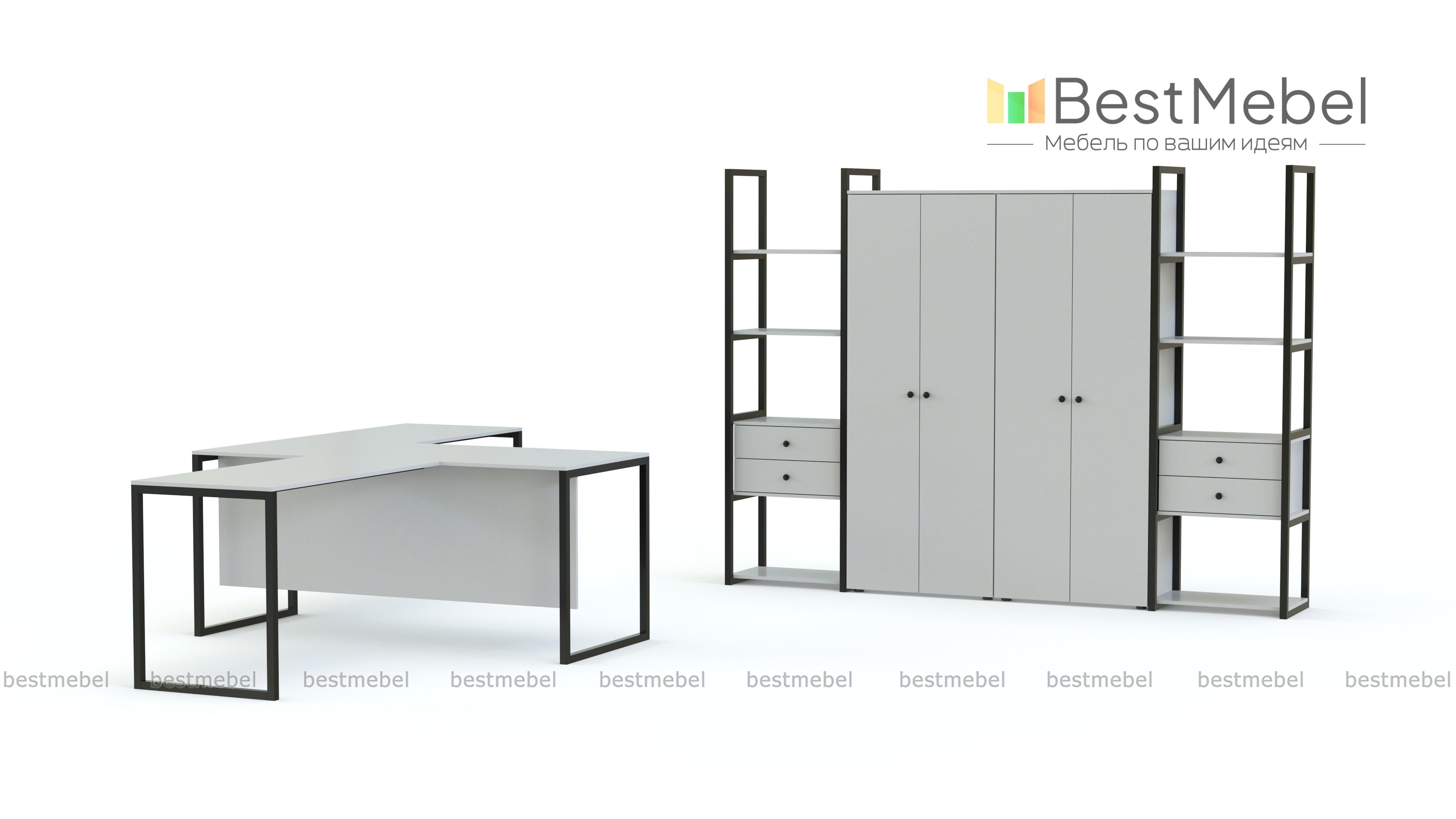 Кабинет руководителя Таймс 12 BMS - стильный и эргономичный, станет залогом успешной работы. Композиция в индустриальной эстетике объединила переговорный угловой стол, двухдверные распашные шкафы и книжные стеллажи с ящиками для мелочей. Металлический профиль придает конструкции из ламинированной ДСП прочность и красиво подчеркивает геометрию линий. Купить кабинет руководителя Таймс 12 BMS приглашаем в наш интернет-магазин, подобрав необходимые размеры, цвет и фурнитуру.