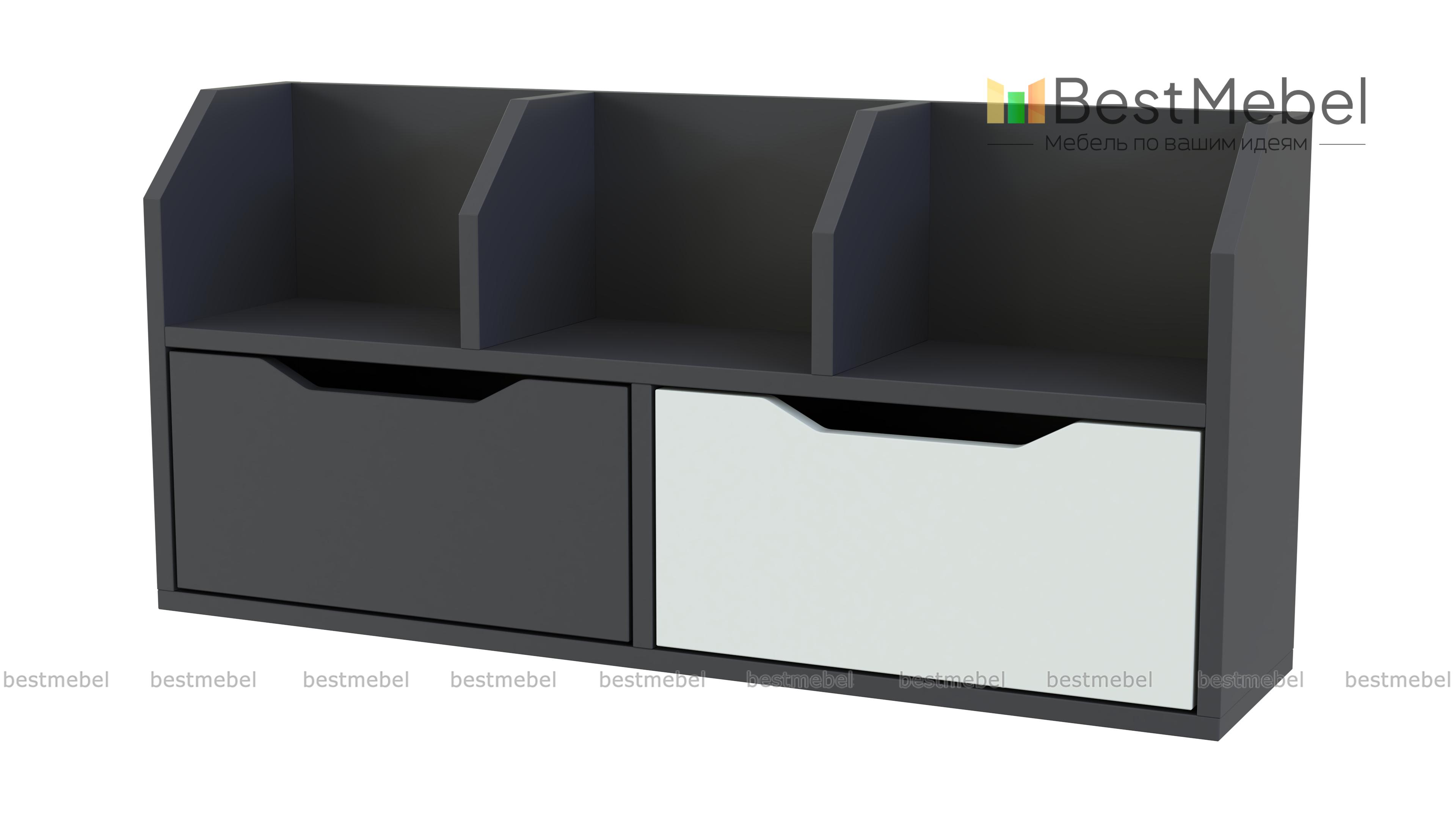 Надставка для стола Дуо 6 BMS отличается компактными размерами и ярким современным дизайном. Модель, оборудованная двумя выдвижными ящиками с ручками-вырезами и тремя открытыми секциями со скошенными перегородками, разместит книги, папки, канцелярские мелочи и предметы декора. Практичное дополнение освободит рабочую поверхность стола от лишних вещей и поможет держать под рукой все необходимое. Купить надставку для стола Дуо 6 BMS по доступной цене приглашаем в наш интернет-магазин.